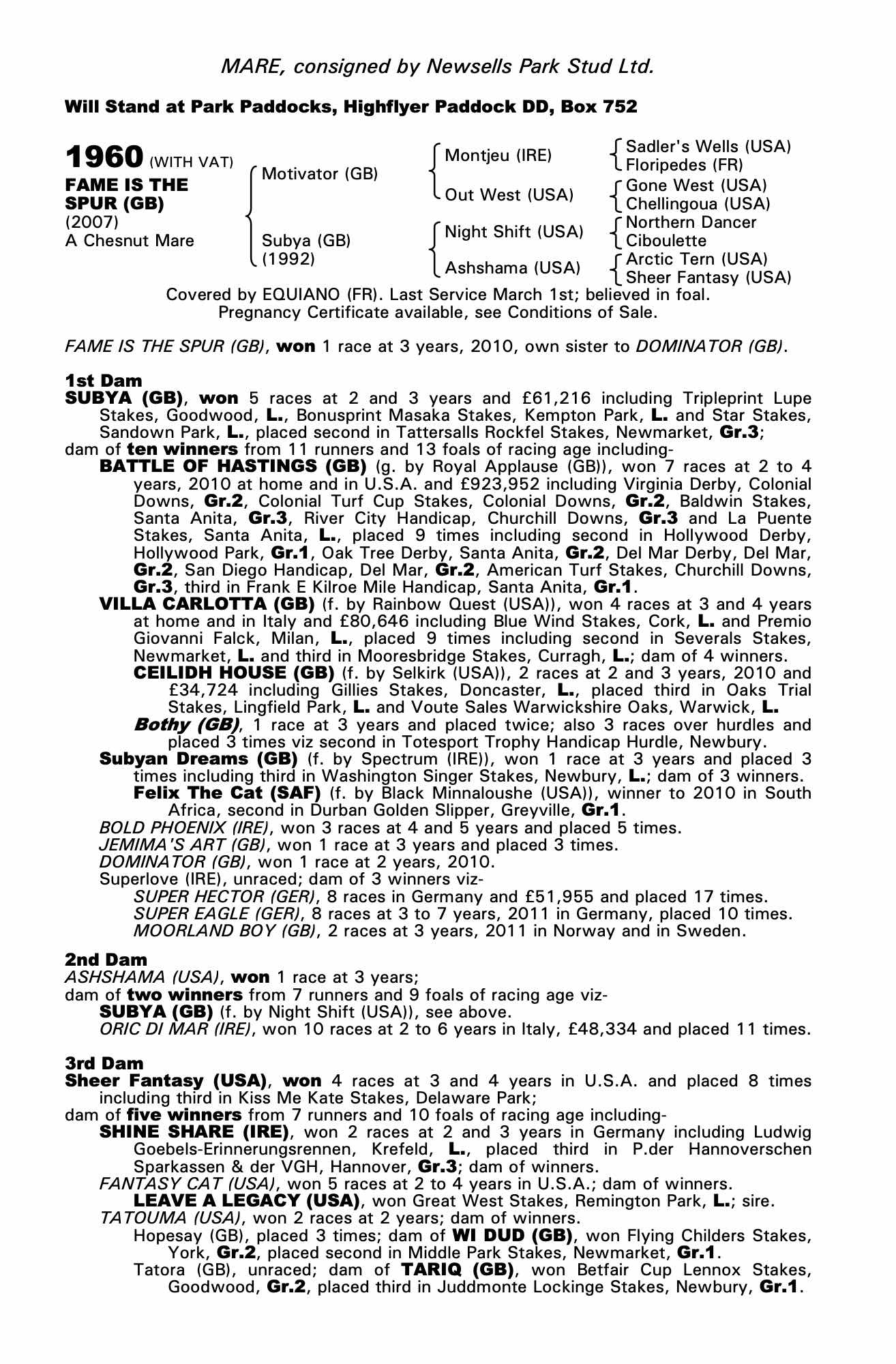 July Sale 2005 lot 585 Subyan Dreams (GB) (F. by Spectrum (IRE)), St Gatien Stables=>Margaret O'Toole 50,000 gns