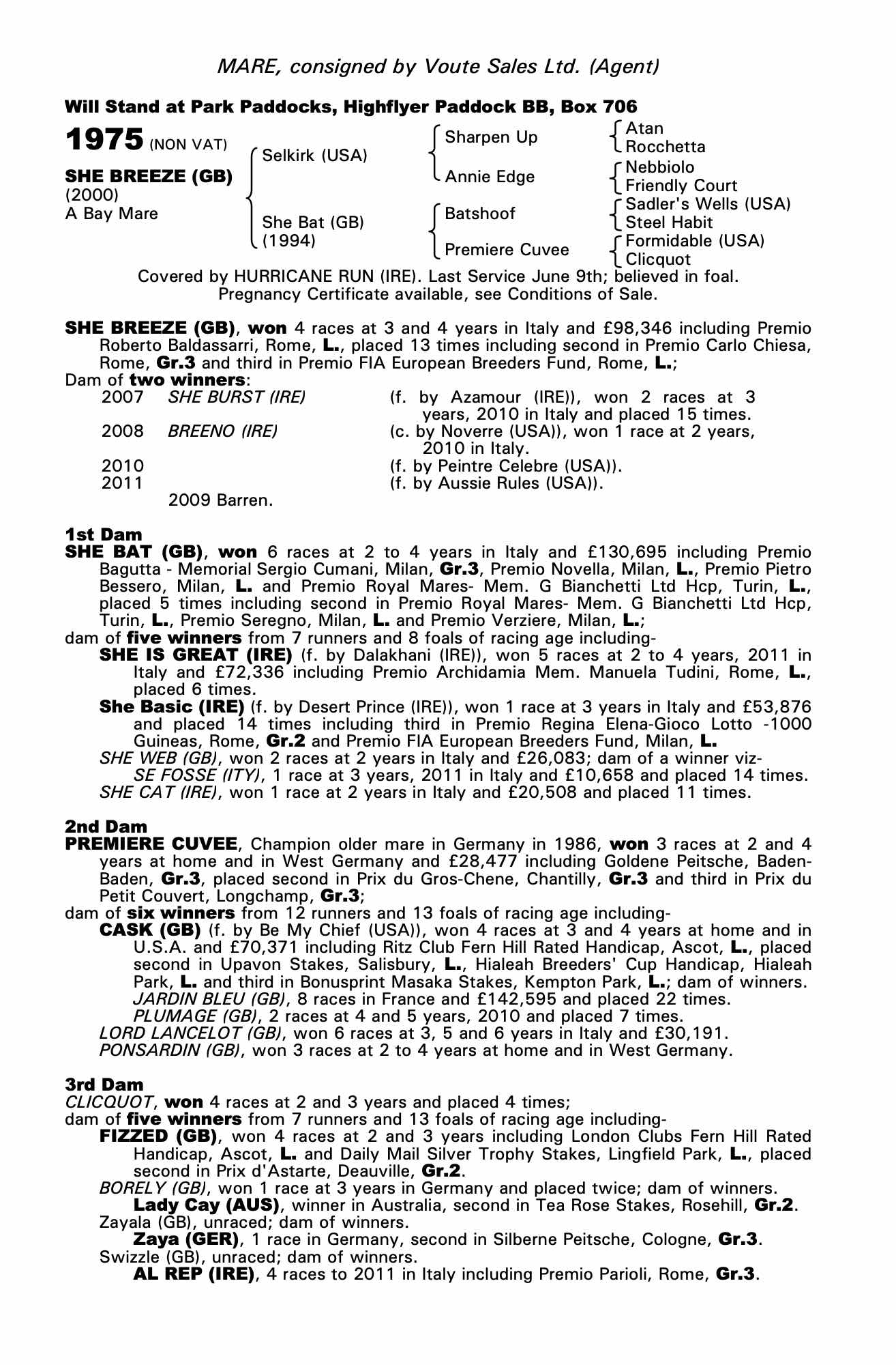 December Mare Sale 2011 lot 1902 She Basic (IRE) (M. by Desert Prince (IRE)), Voute Sales Ltd. (Agent)=>Lot Not Sold