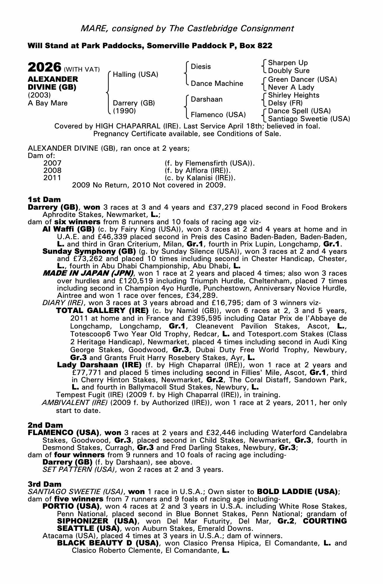 Autumn Horses in Training Sale 2001 lot 186 Diary (IRE) (F. by Green Desert (USA)), Darley=>Vangelis Rossides 7,000 gns