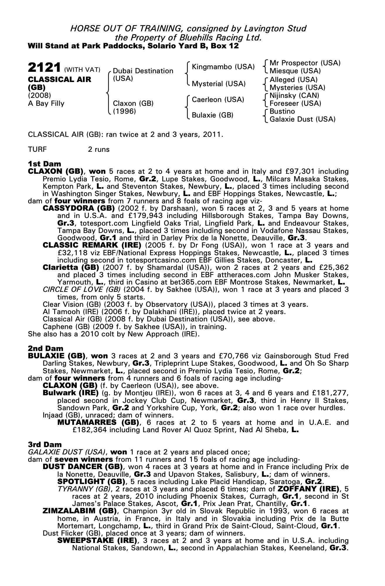 December Mare Sale 2012 lot 1331 Classic Remark (IRE) (M. by Dr Fong (USA)), Lavington Stud=>Airlie Stud 120,000 gns