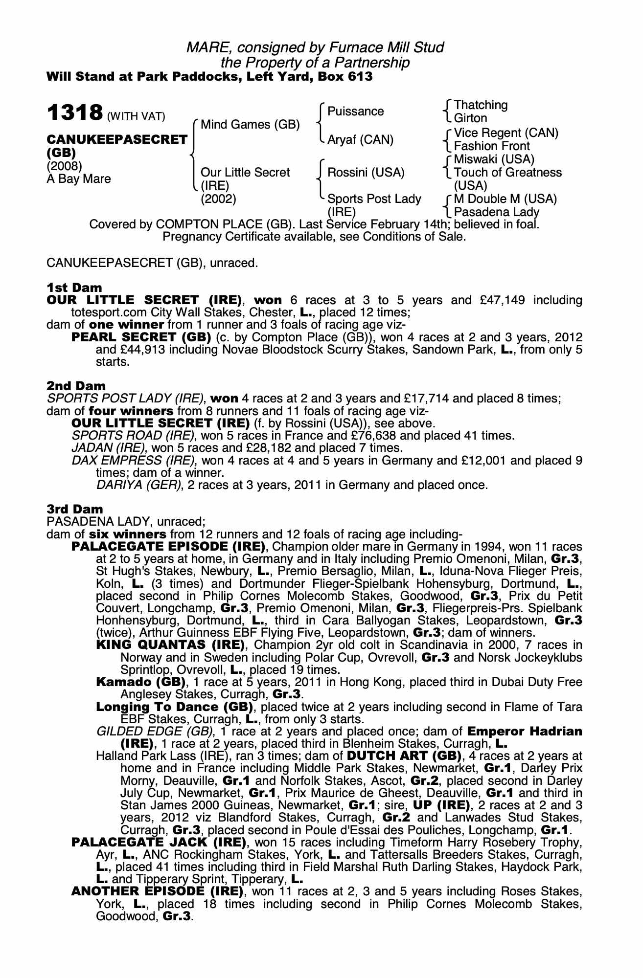 Consignor: Furnace Mill Stud