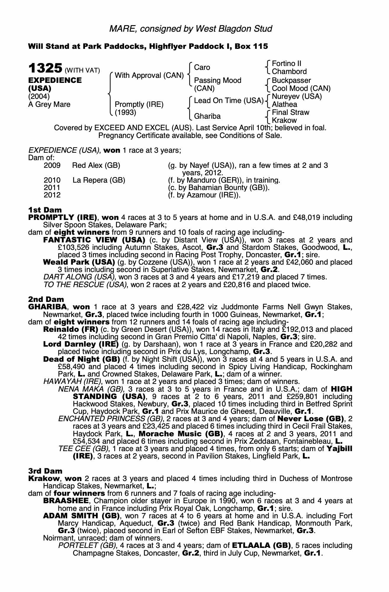 Consignor: West Blagdon Stud