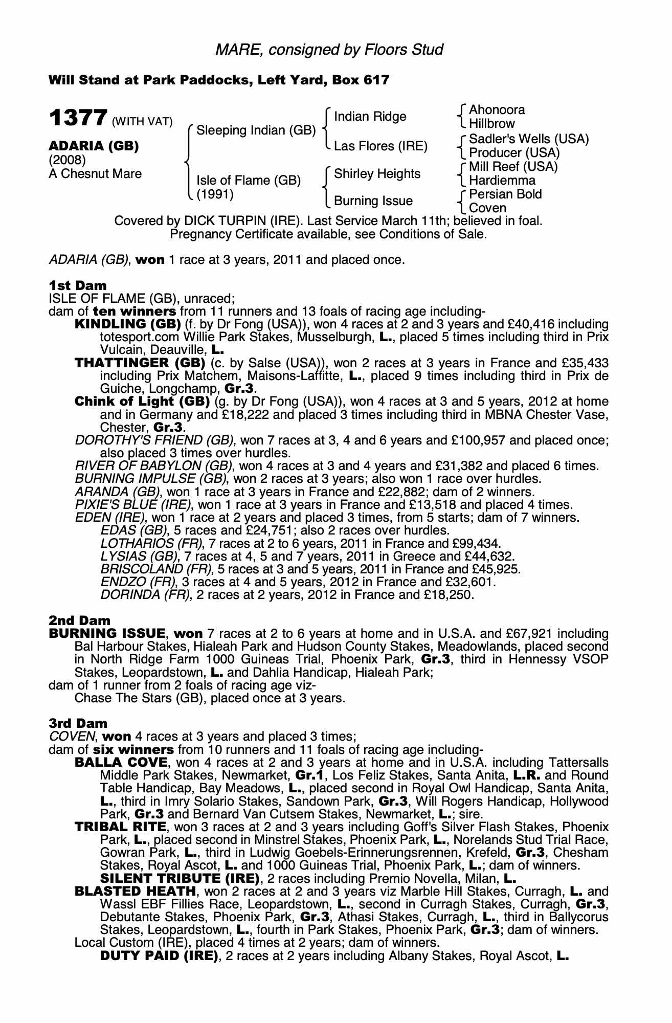 December Mare Sale 2013 lot 1401 Kindling (GB) (M. by Dr Fong (USA)), Floors Stud=>Melchior Bloodstock 32,000 gns