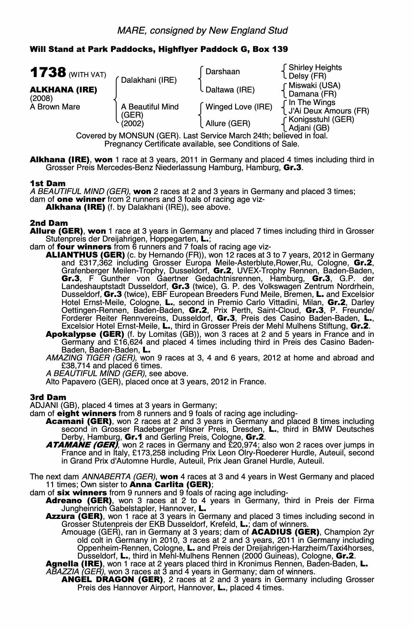 December Mare Sale 2014 lot 2313 Alpinia (IRE) (F. by Peintre Celebre (USA)), New England Stud=>SJ Leahy Bloodstock 1,500 gns