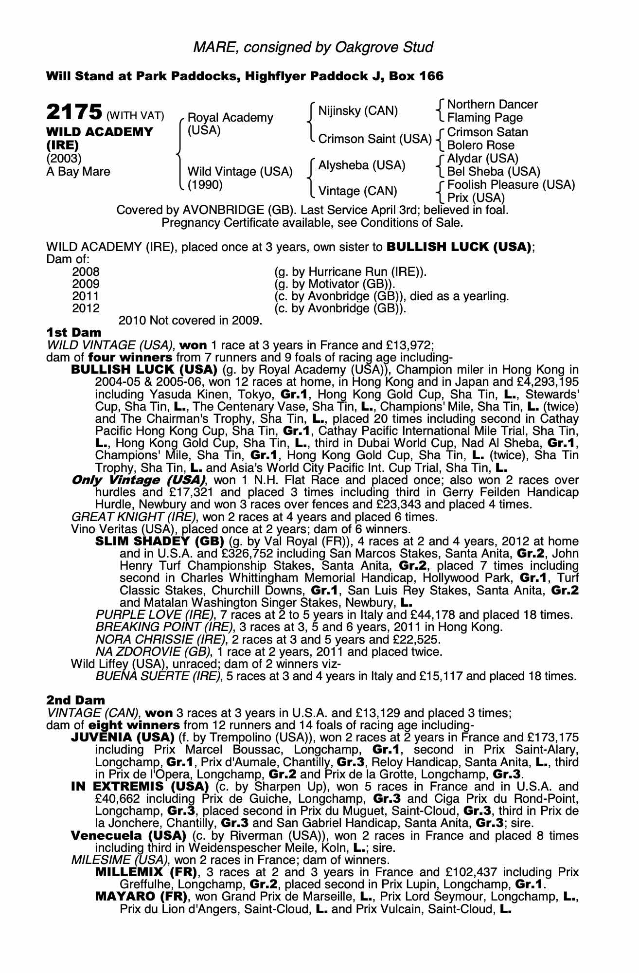 December Mare Sale 2000 lot 2444 Green Wilderness (USA) (F. by Green Dancer (USA)), Pegasus Stables=>BBA (UK) 8,000 gns