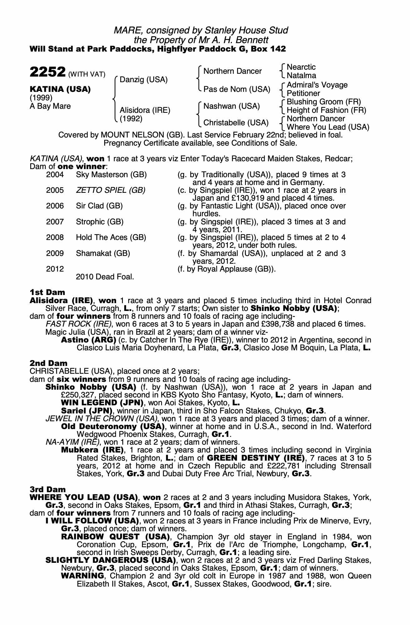 December Mare Sale 2002 lot 1868, Voute Sales, Agent=>Lot Not Sold 28,000 gns