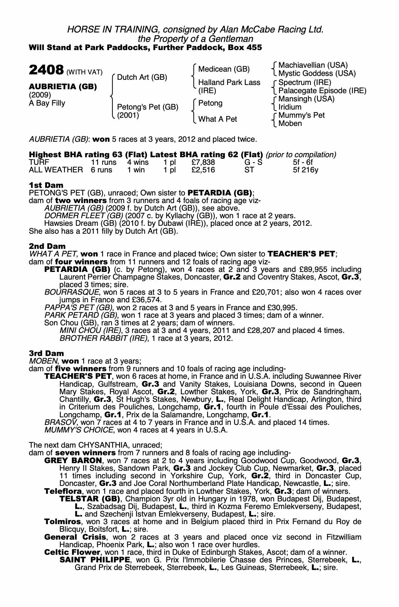 July Sale 2012 lot 241, Machell Place Stables (E. Vaughan)=>Alan McCabe Racing 6,000 gns