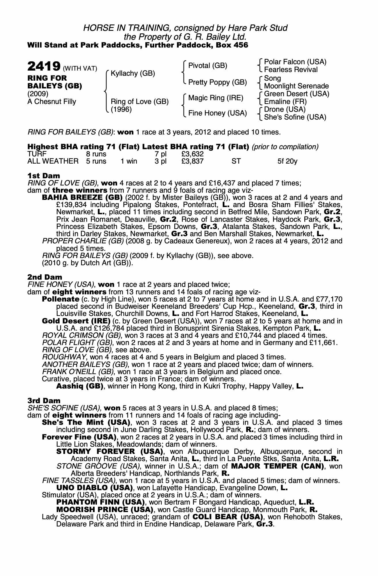 October Yearling Sale, Book 2 2003 lot 1237 F. by Mister Baileys (GB) 2002, Shefford Valley Stud=>R Guest 5,000 gns