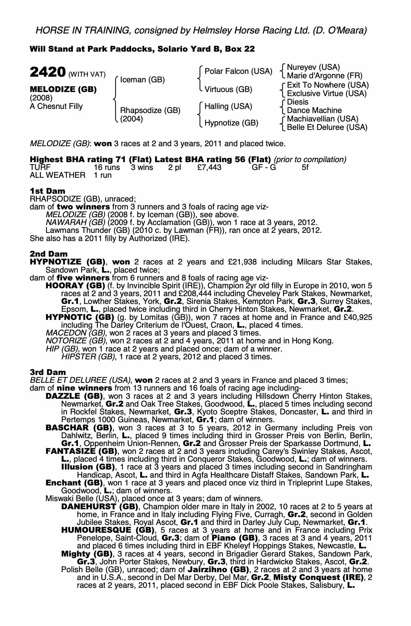 Consignor: Helmsley Horse Racing Ltd. (D. O'Meara)