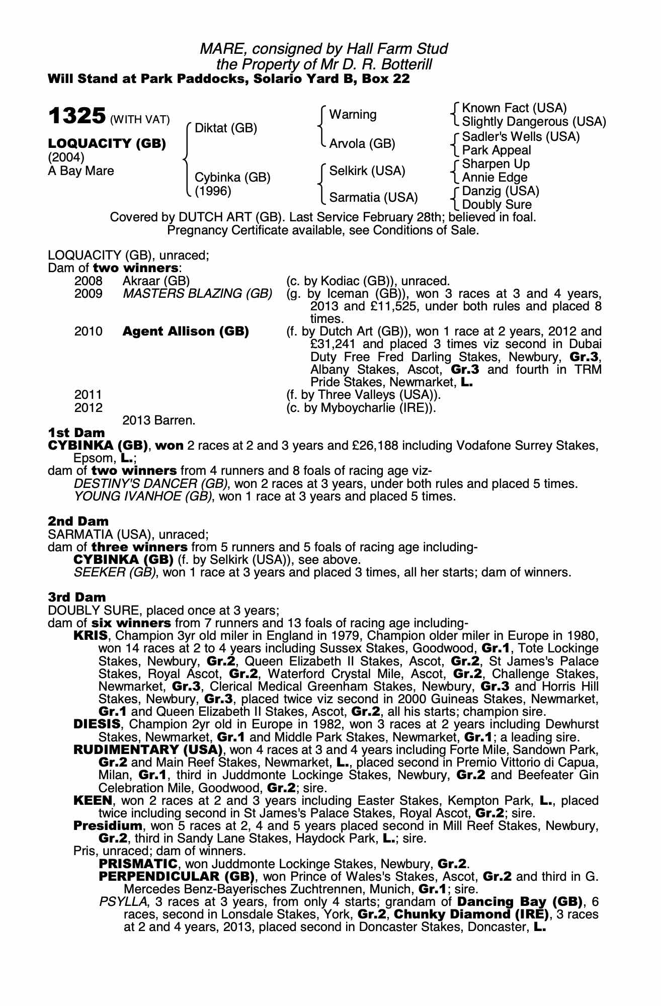 Consignor: Hall Farm Stud