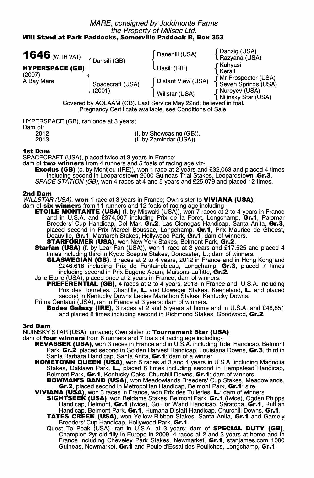July Sale 2009 lot 427 Space Station (GB) (C. by Anabaa (USA)), Juddmonte Farms=>S Dow 15,000 gns