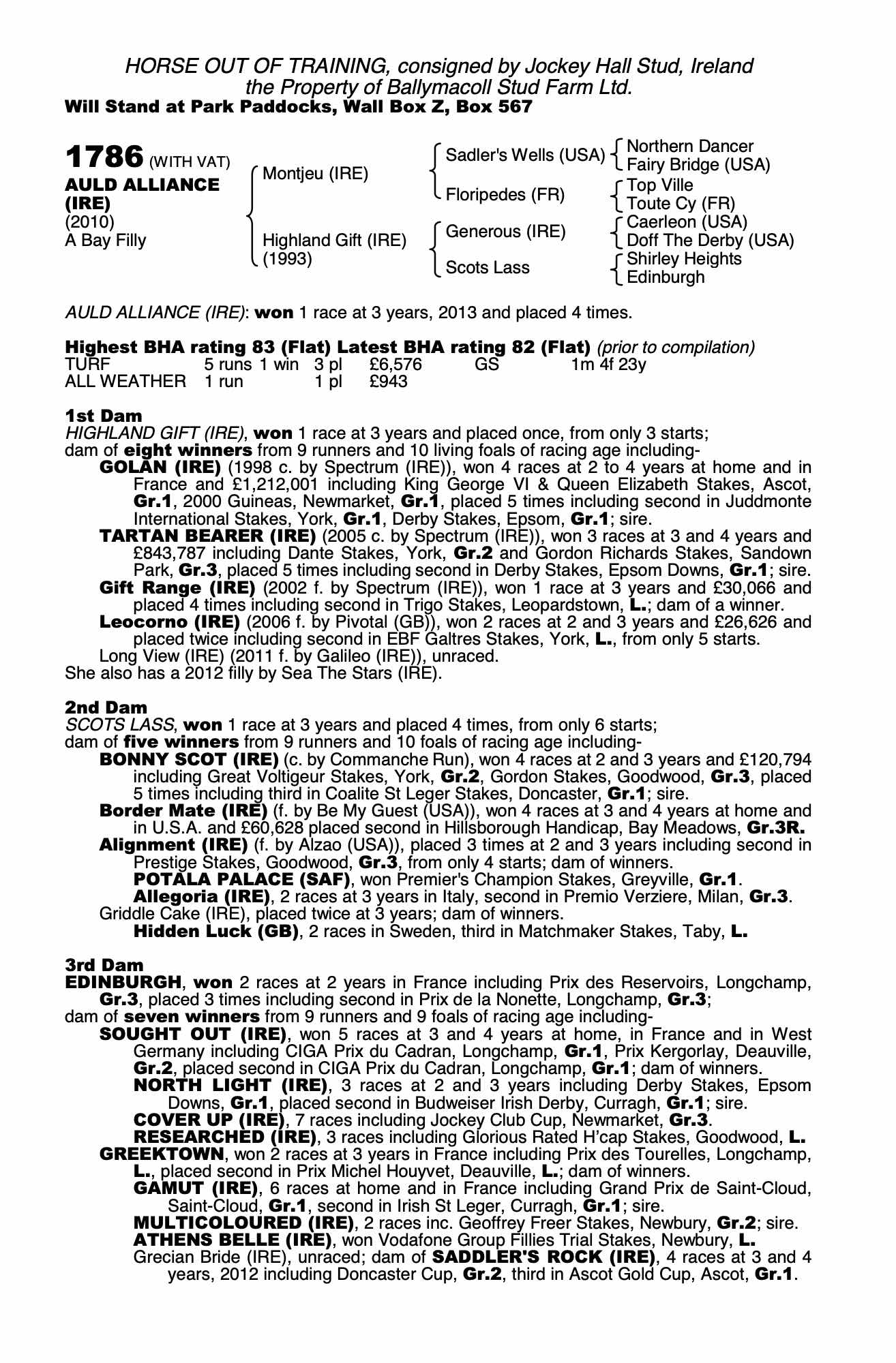 Consignor: Jockey Hall Stud, Ireland