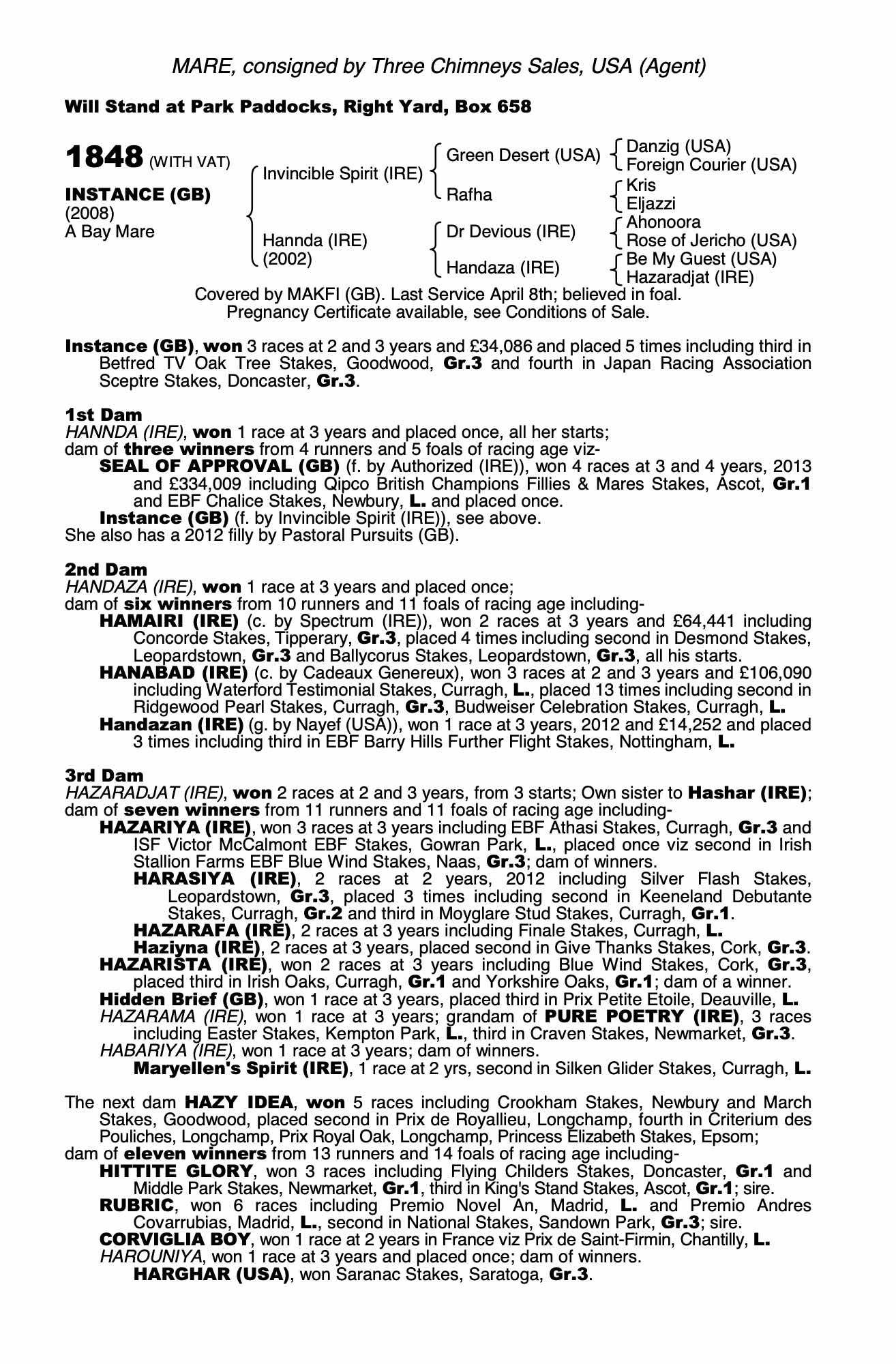 Consignor: Three Chimneys Sales, USA (Agent)