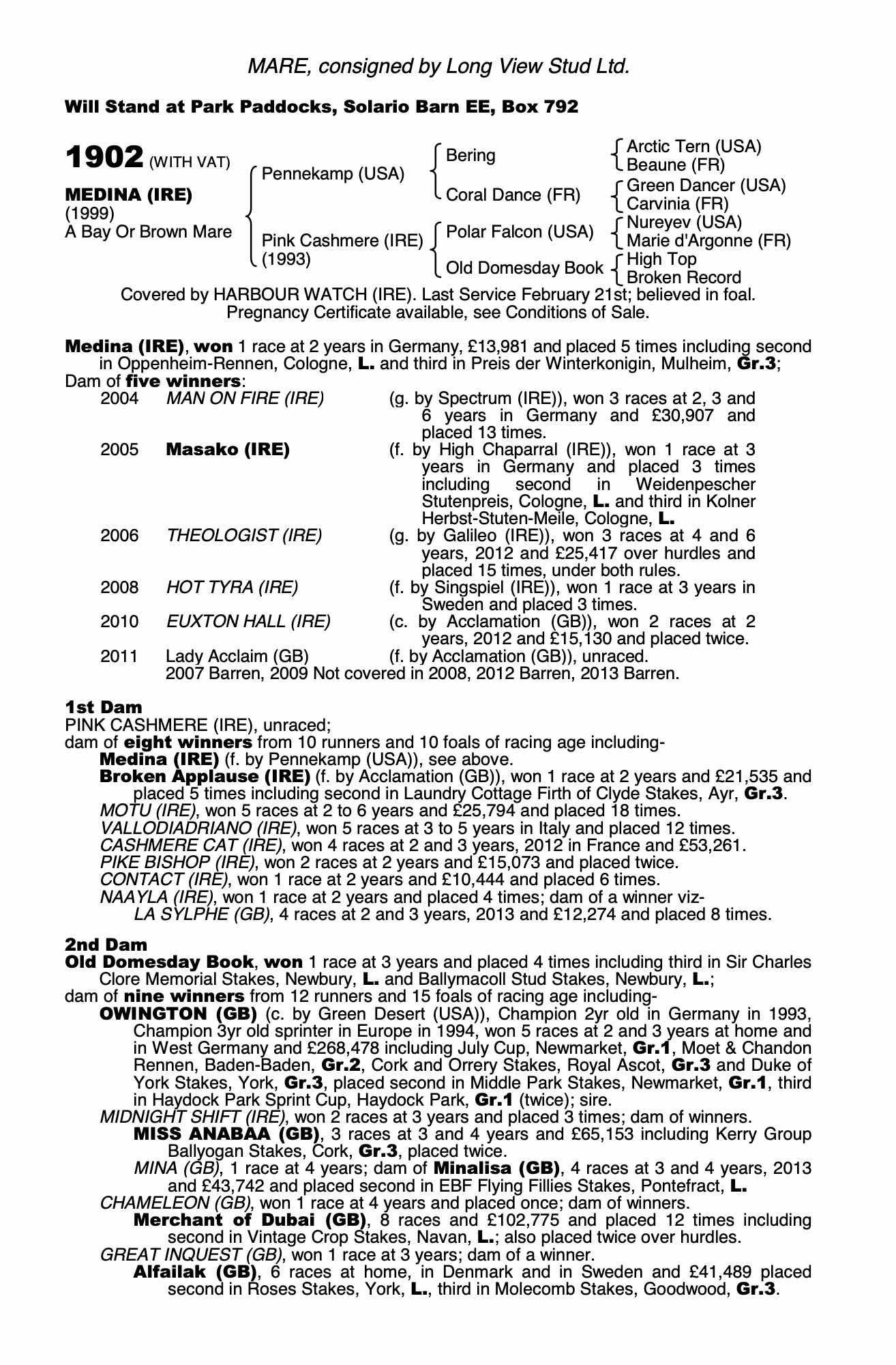 Flat Foal & Breeding Stock Sale 2018 lot 218 Lady Acclaim (GB) (M. by Acclamation (GB)), Newbrook Stud=>Lot Not Sold €800