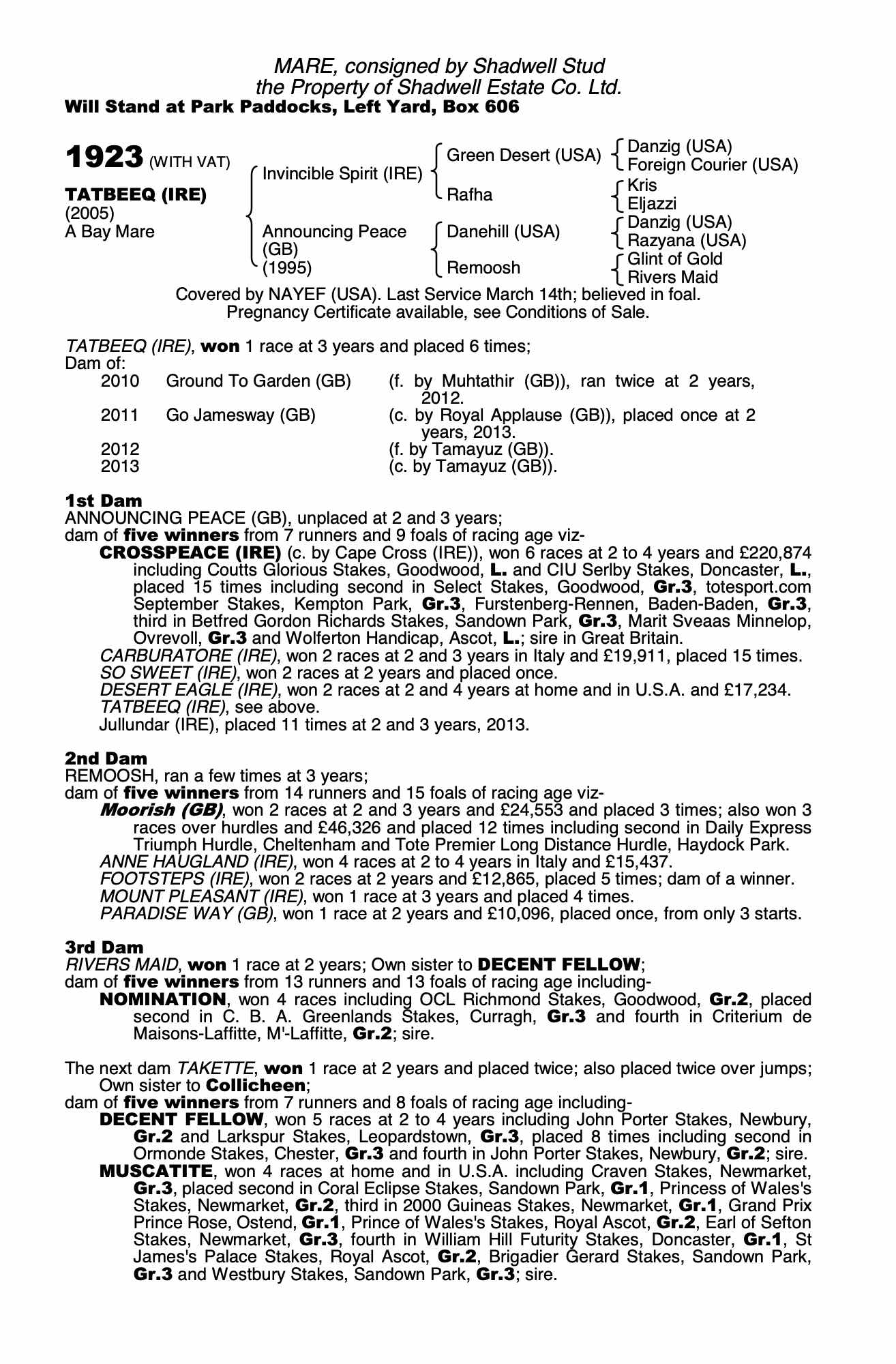 October Yearling Sale, Book 3 2011 lot 1609 F. by Muhtathir (GB) 2010, Shadwell Stud=>Lot Not Sold