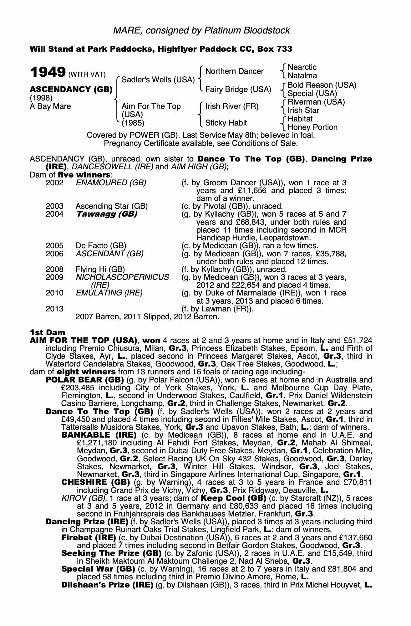 December Mare Sale 2001 lot 1732 Dancing Prize (IRE) (M.), Cheveley Park Stud=>Ringfort Stud 38,000 gns