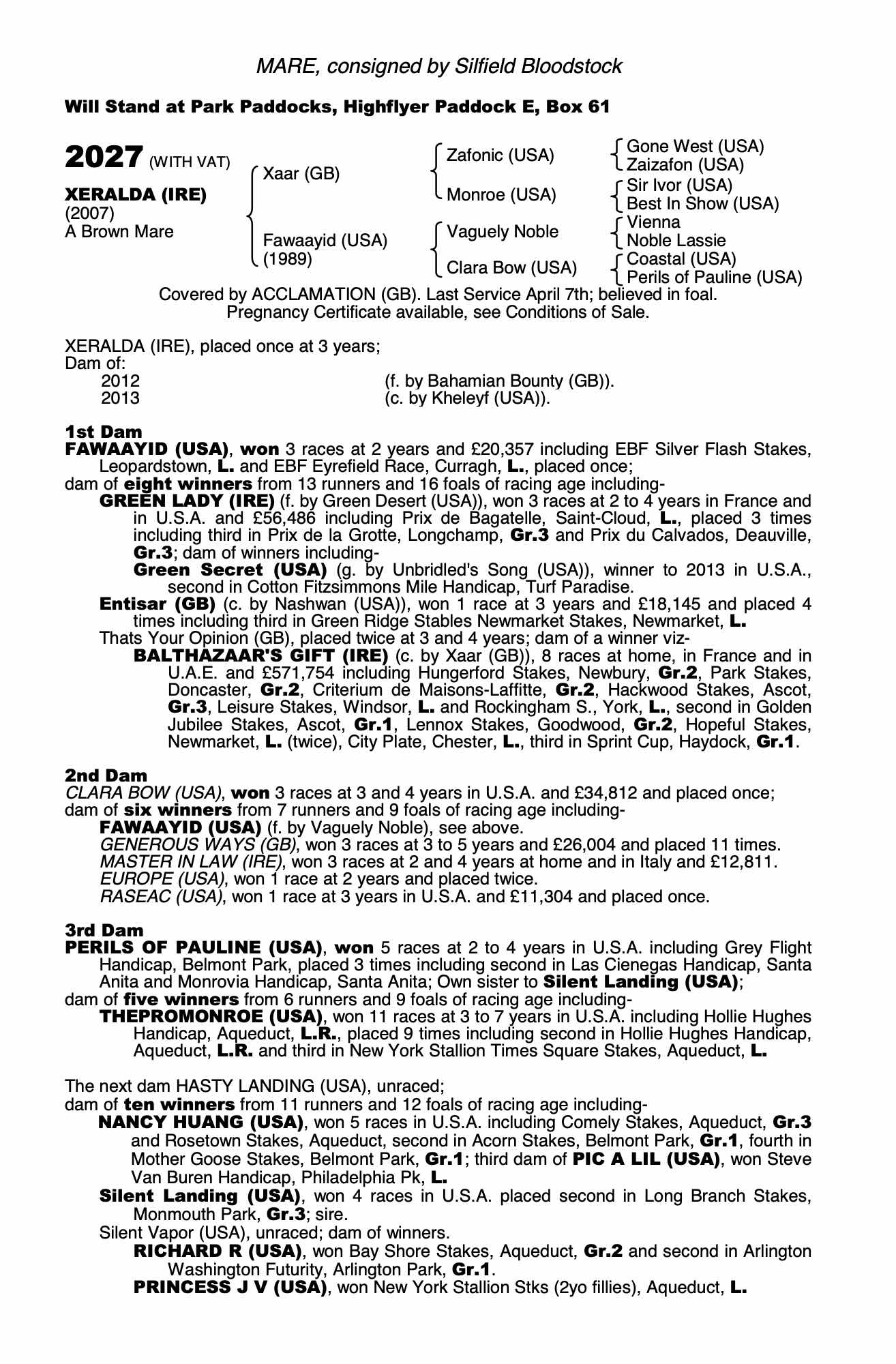 December Mare Sale 2002 lot 1732 Shamo (GB) (M. by Green Desert (USA)), Voute Sales, Agent=>Vendor 75,000 gns