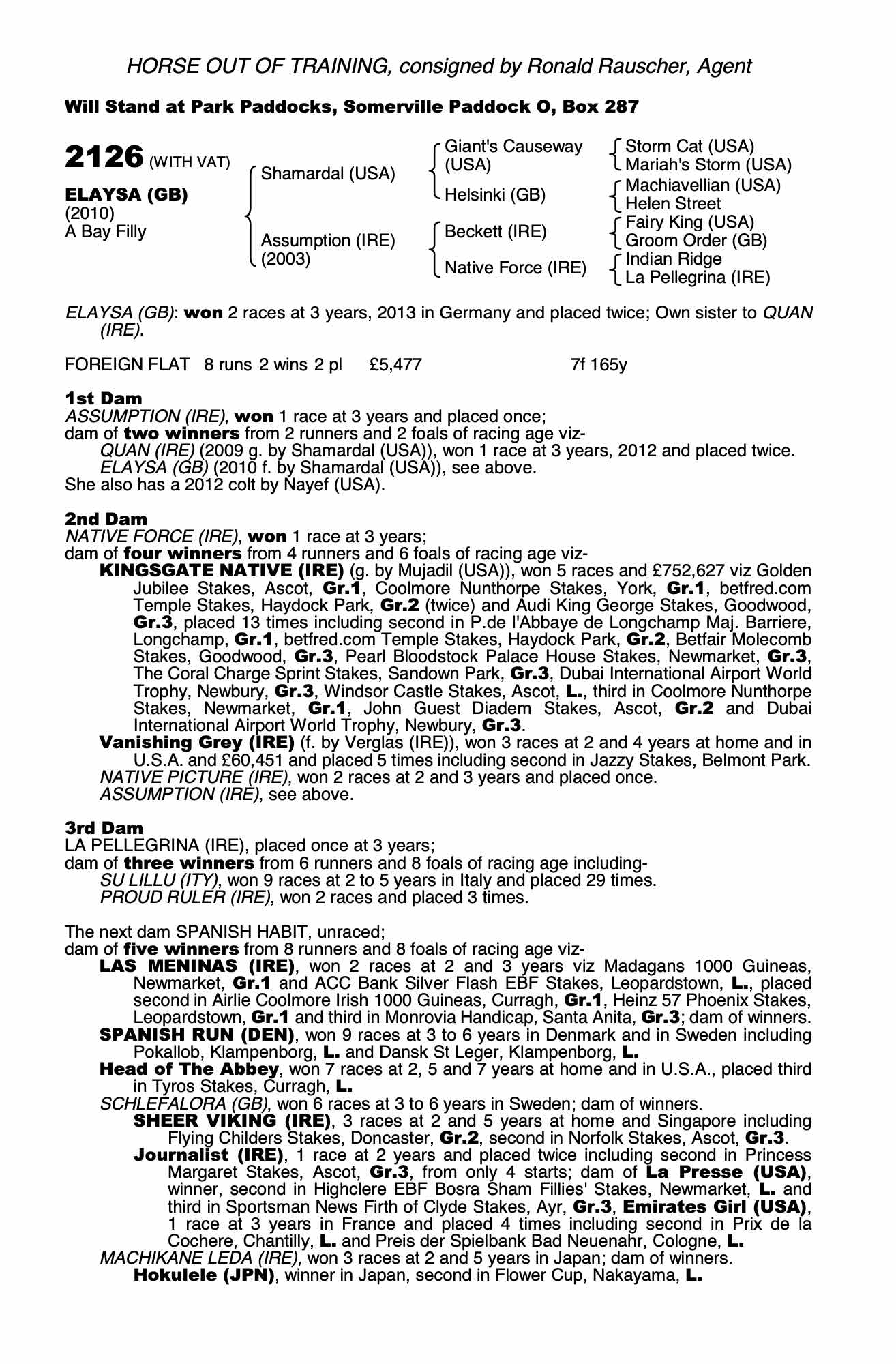 December Mare Sale 2017 lot 2003 Out of The Dark (IRE) (M. by Kyllachy (GB)), Glebe Farm Stud=>Vendor 25,000 gns