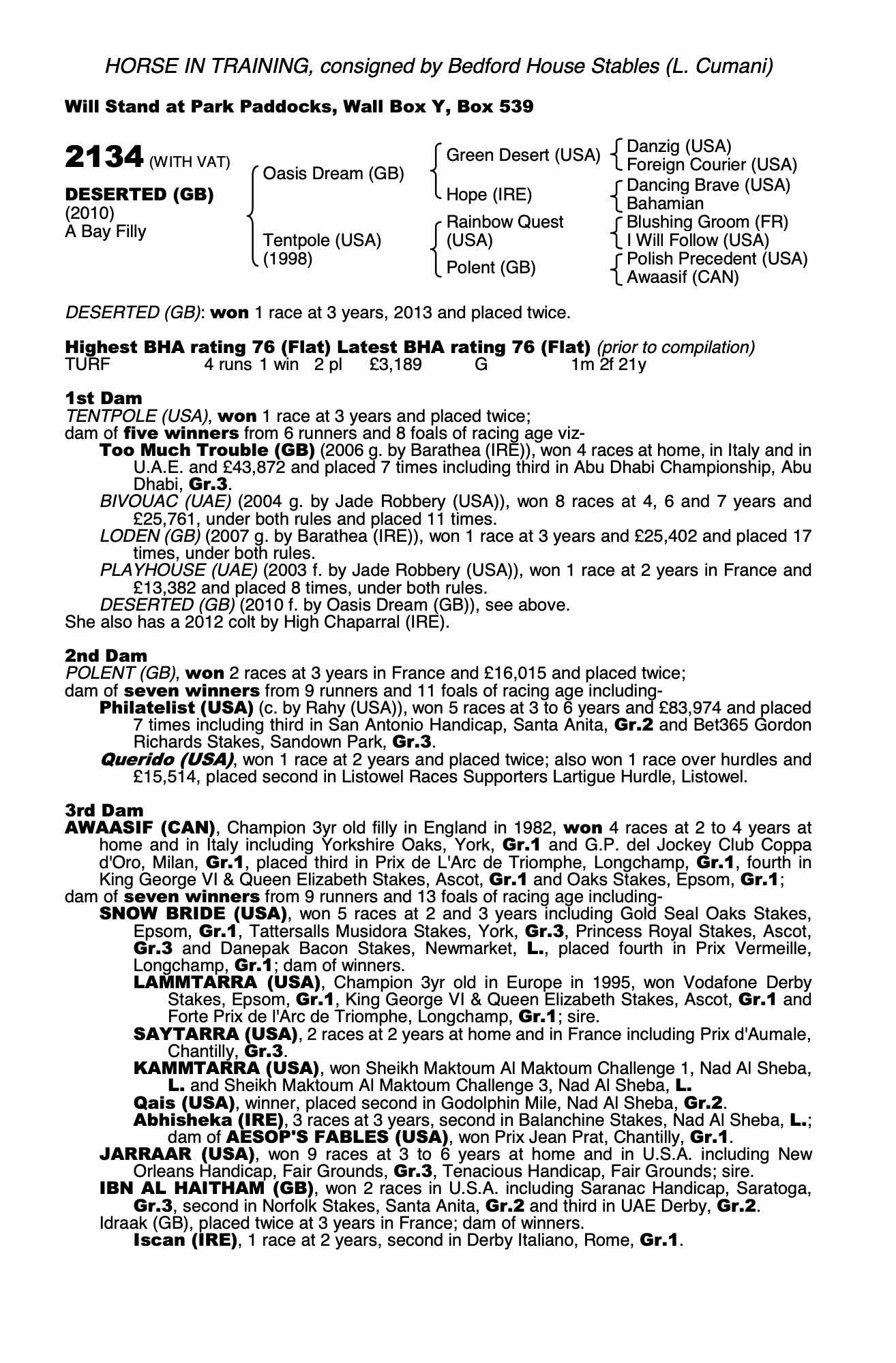 Consignor: Bedford House Stables (L. Cumani)