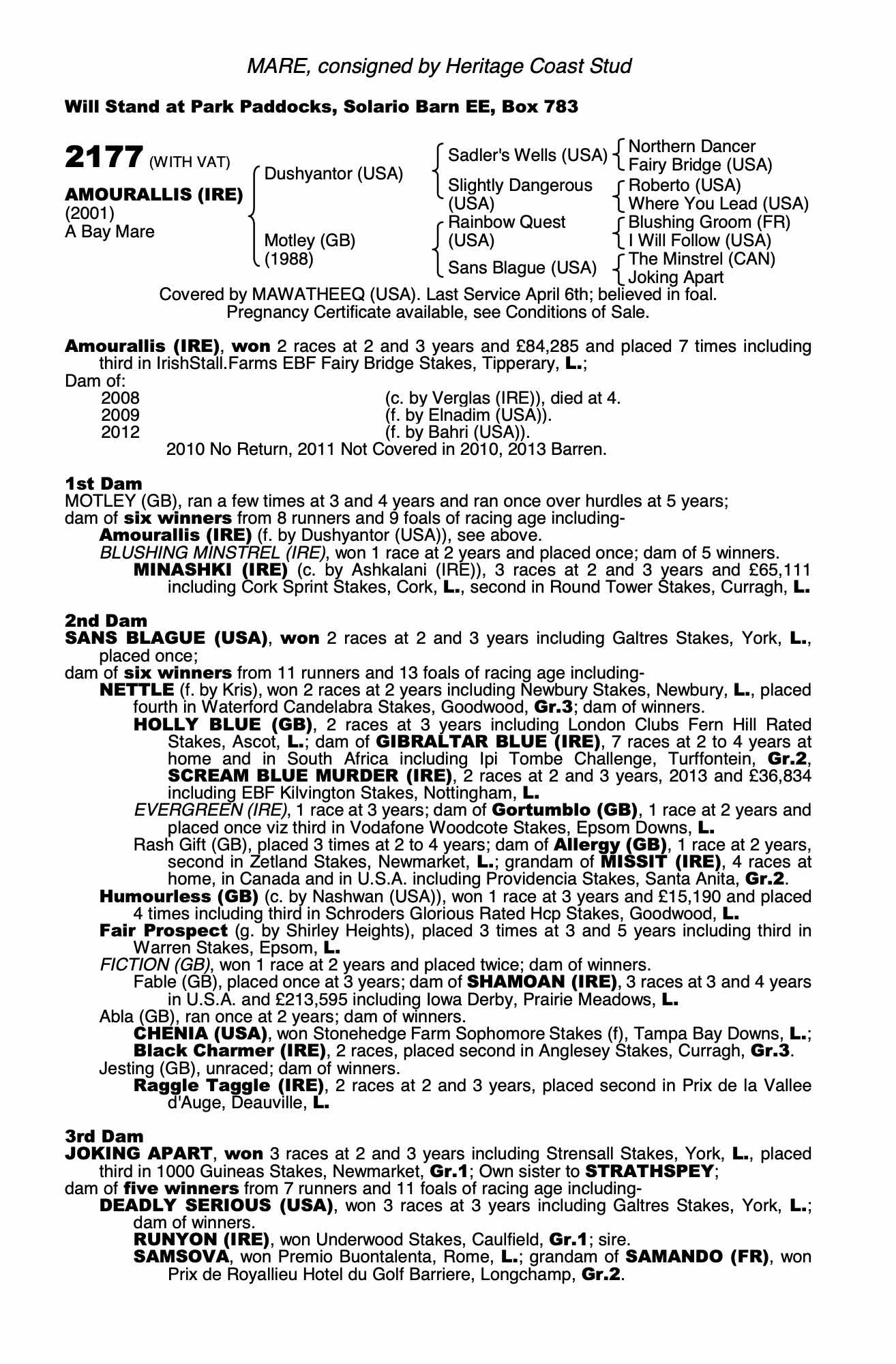 December Yearling Sale 2013 lot 1 F. by Bahri (USA) 2012, Heritage Coast Stud=>Kern/Lillingston Association 10,000 gns