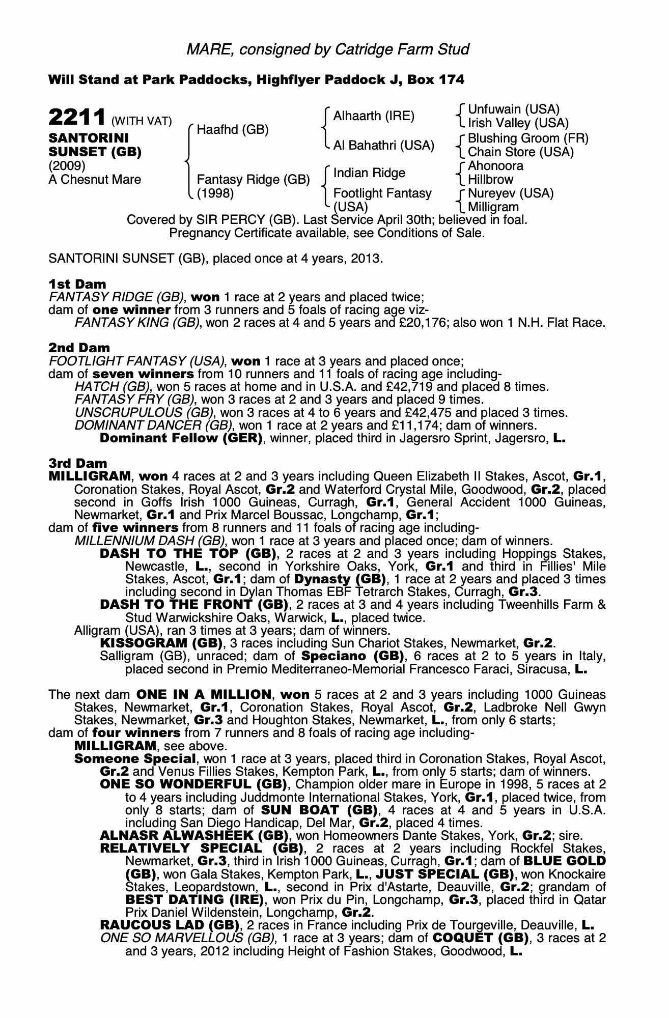 December Mare Sale 2014 lot 2260, Catridge Farm Stud=>Peter Lundberg 1,000 gns
