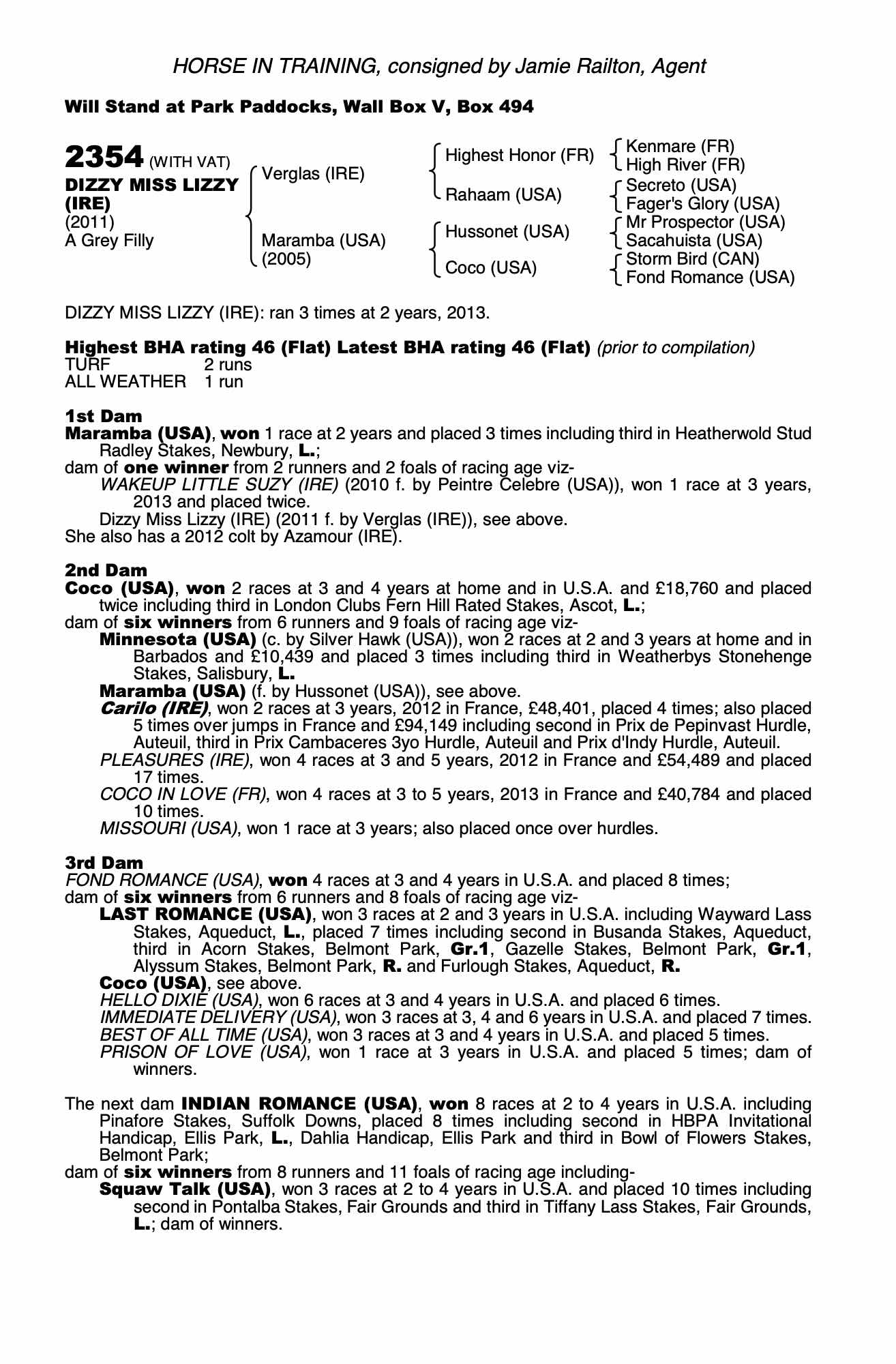 Consignor: Jamie Railton, Agent