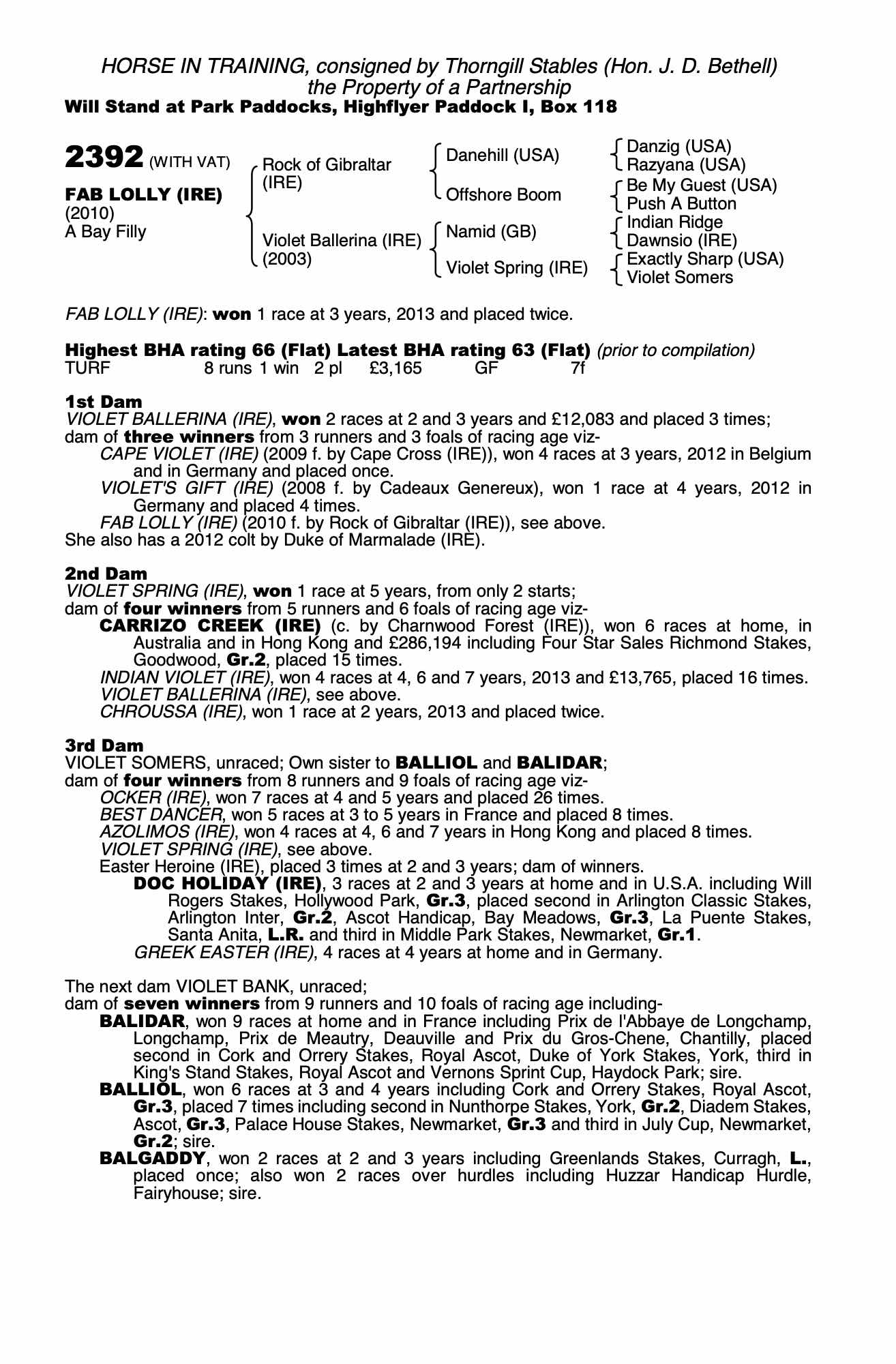 Consignor: Thorngill Stables (Hon. J. D. Bethell)