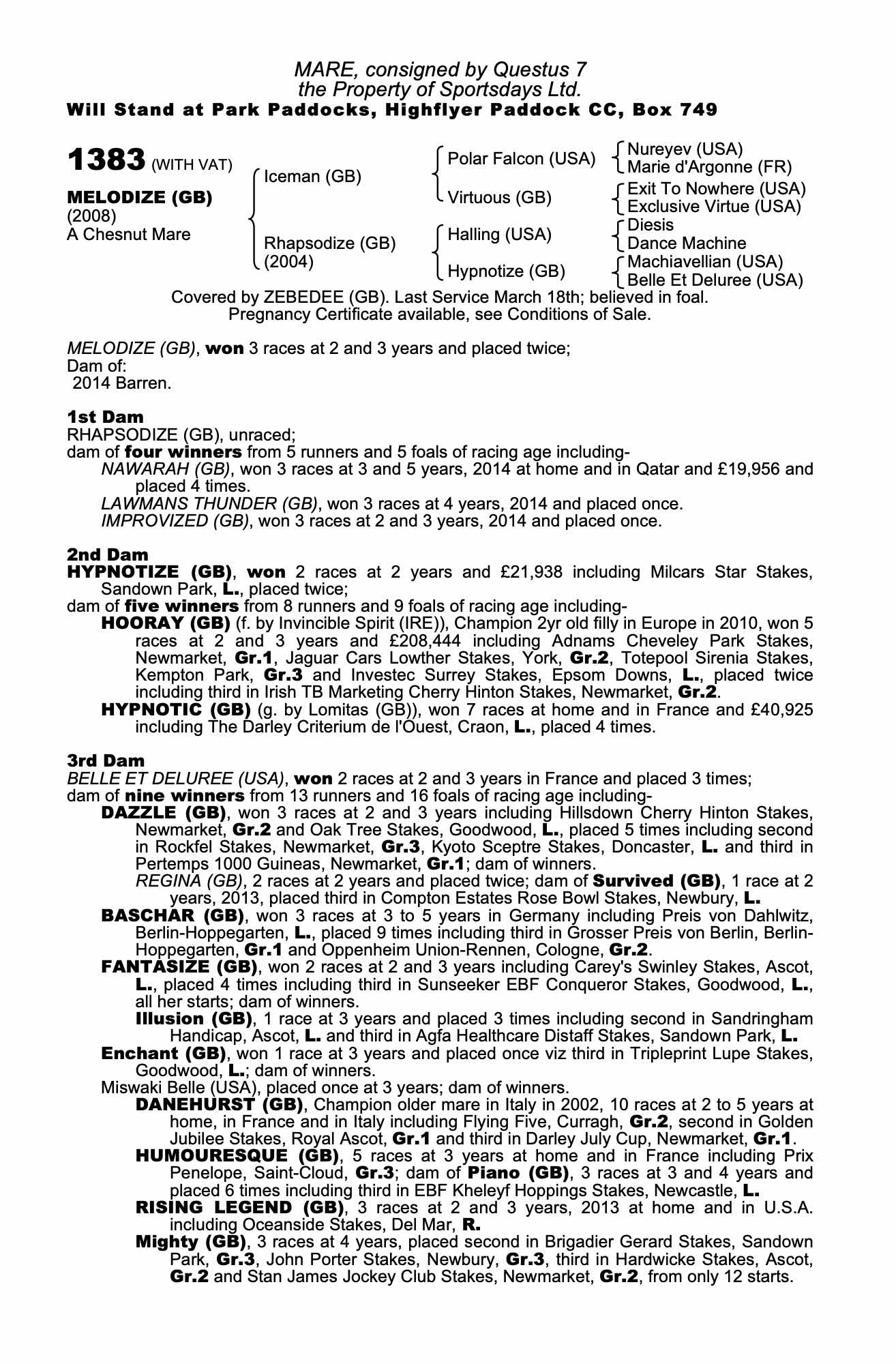 Craven Breeze Up Sale 2011 lot 194 F. by Acclamation (GB) 2009, Questus 7=>Roger Varian 60,000 gns