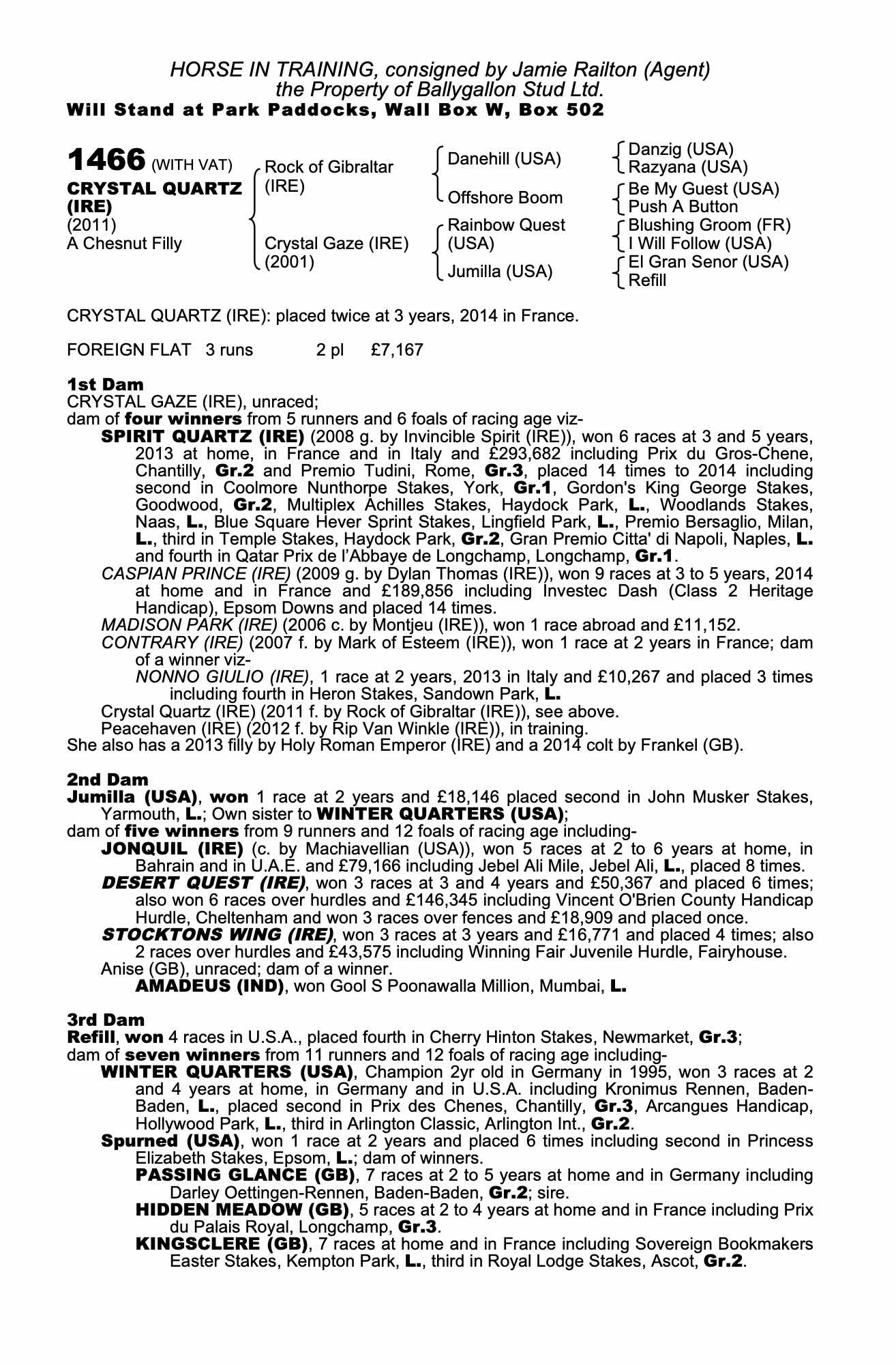 December Mare Sale 2016 lot 1452 Peacehaven (IRE) (F. by Rip Van Winkle (IRE)), Jamie Railton (Agent)=>Whitsbury Manor Stud 30,000 gns