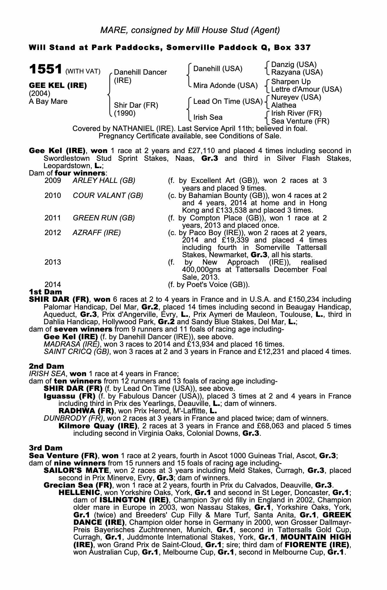 Consignor: Mill House Stud (Agent)