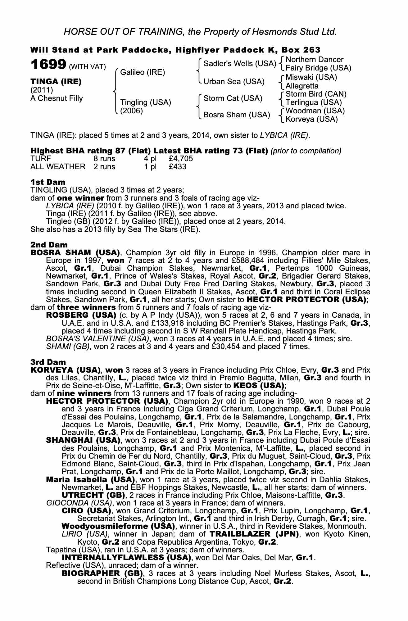 Consignor: Hesmonds Stud Ltd.