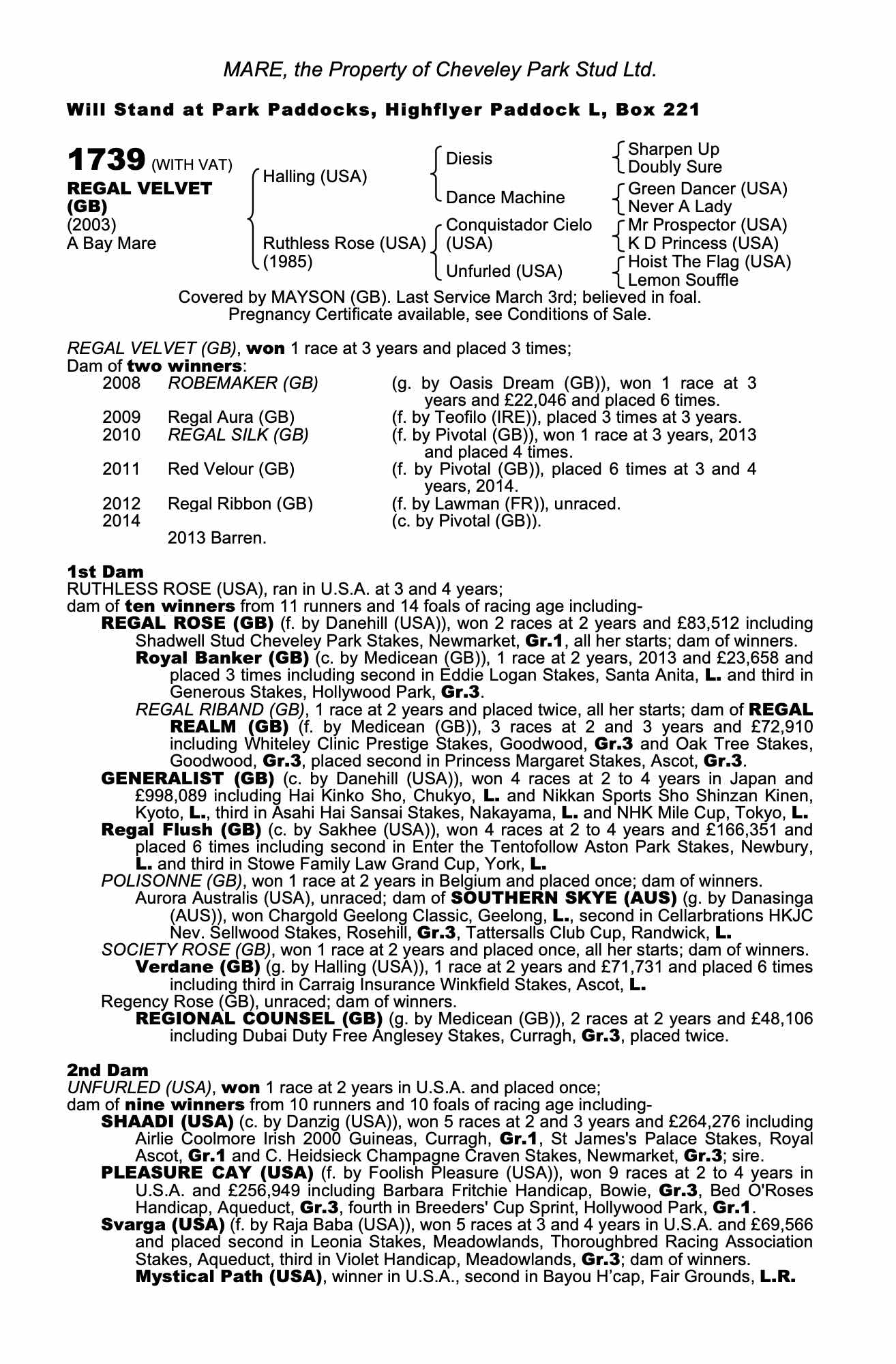December Mare Sale 2015 lot 1885 Regal Silk (GB) (M. by Pivotal (GB)), Cheveley Park Stud Ltd.=>Vendor 18,000 gns