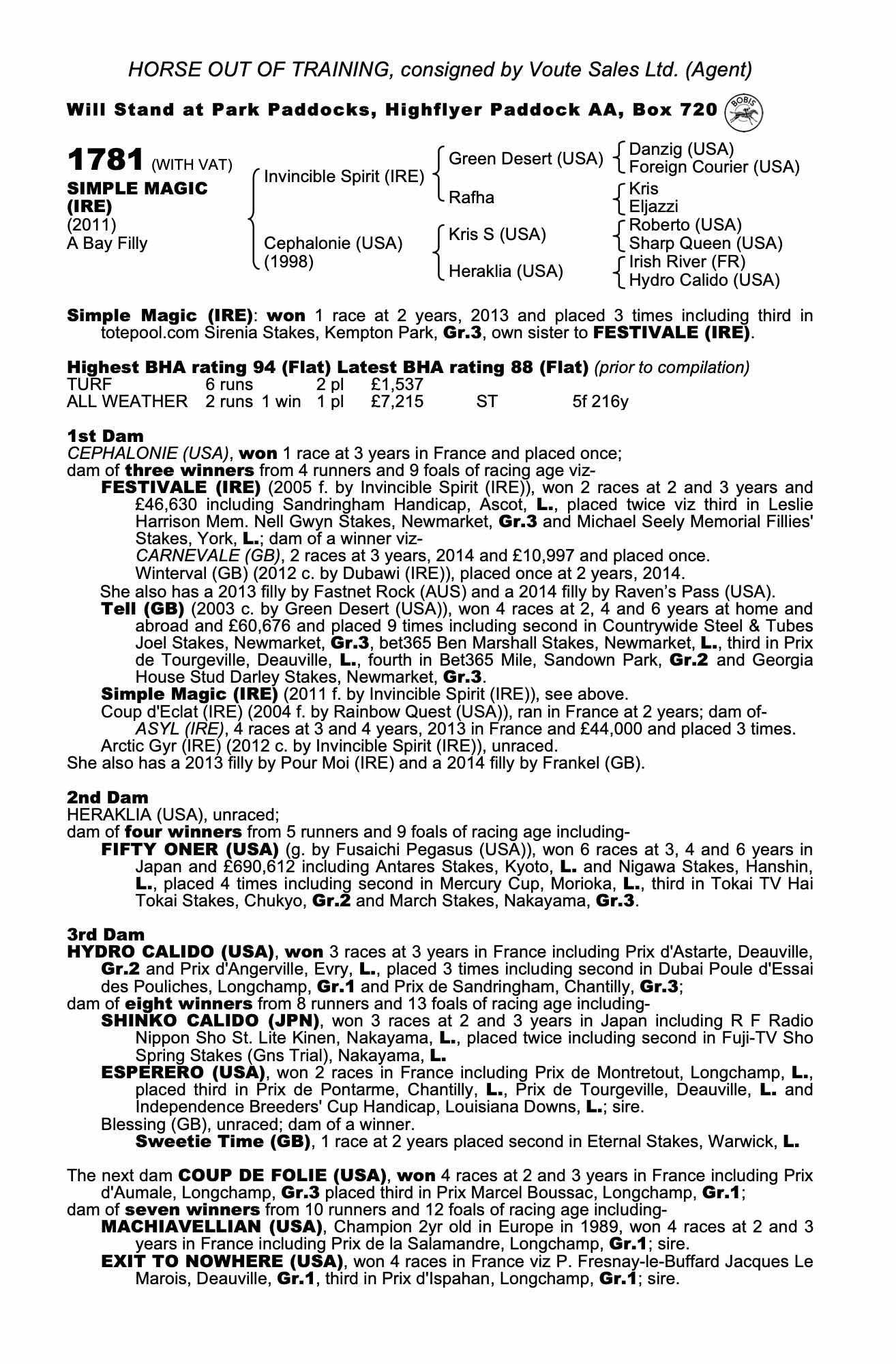 Consignor: Voute Sales Ltd. (Agent)
