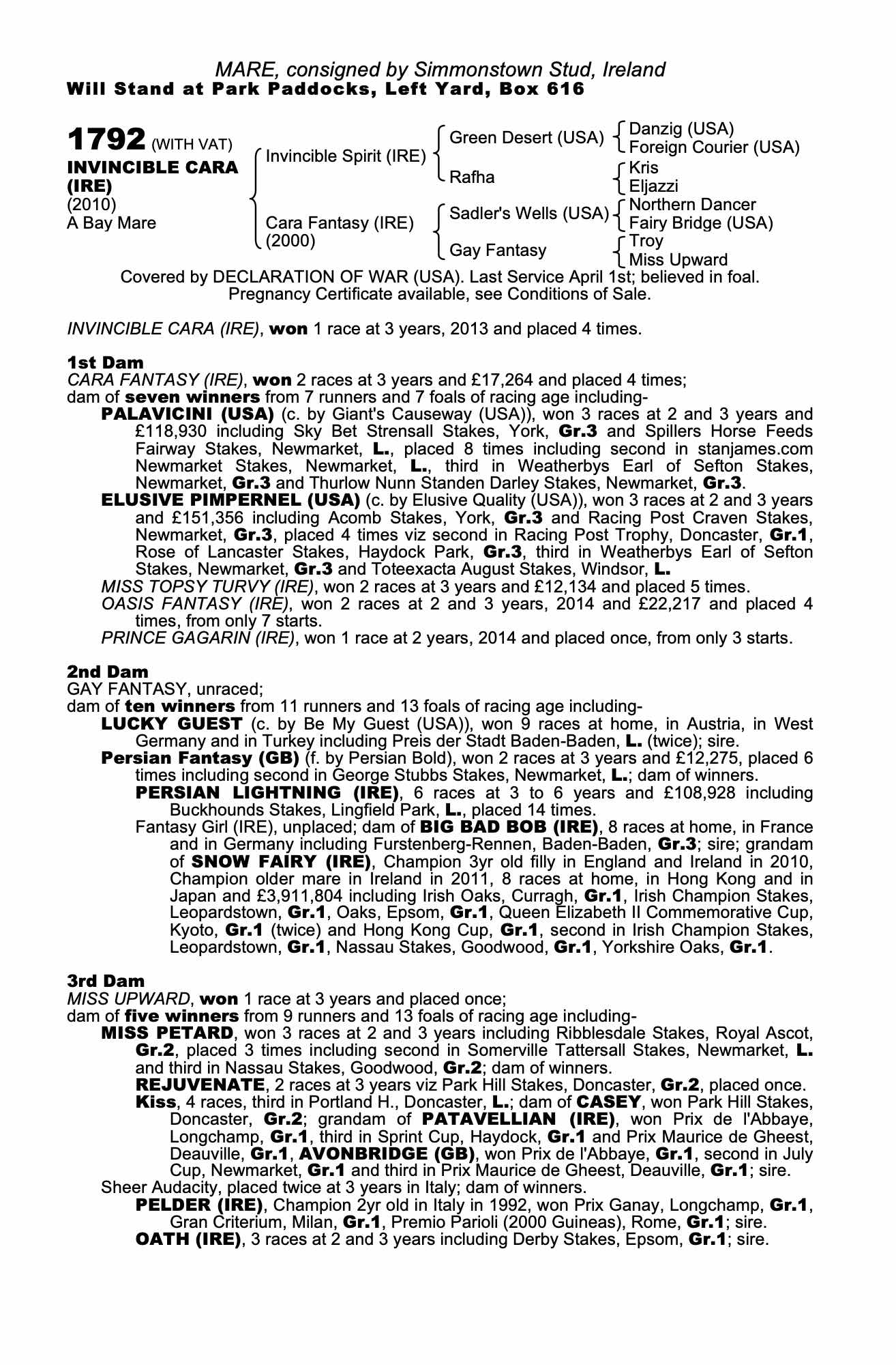 Consignor: Simmonstown Stud, Ireland