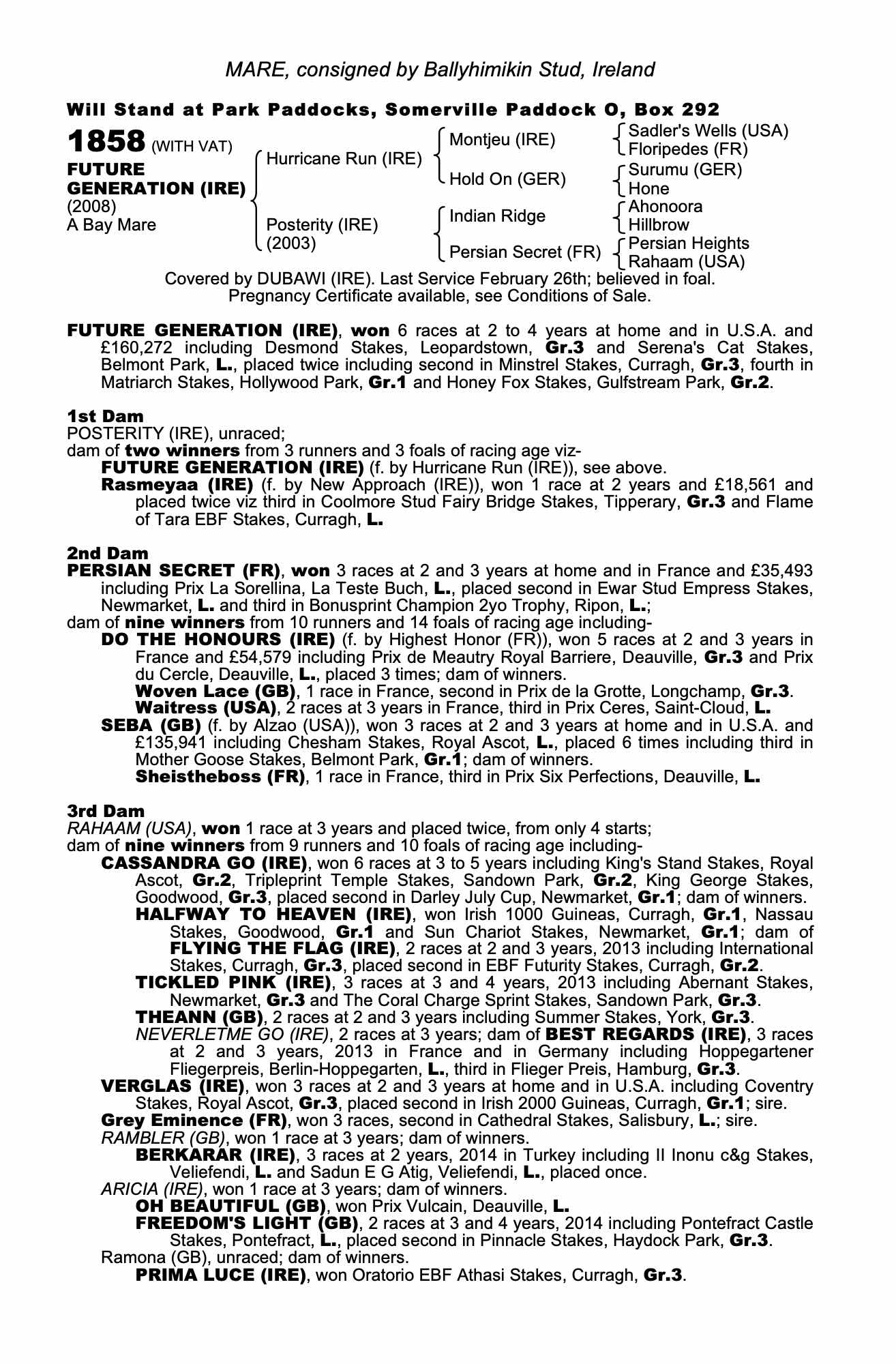 Consignor: Ballyhimikin Stud, Ireland
