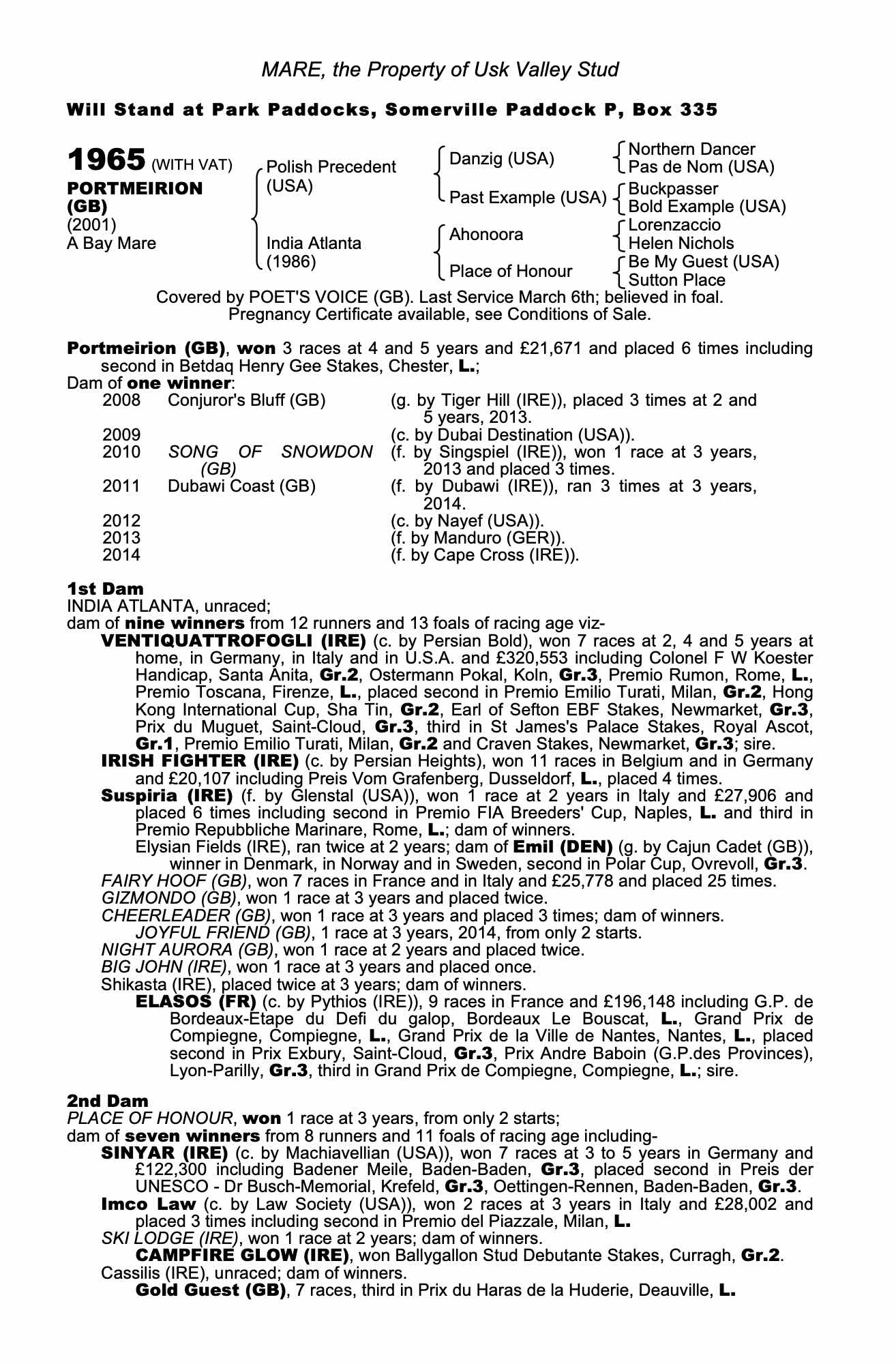 December Mare Sale 1999 lot 2076 Suspiria (IRE) (F. by Glenstal (USA)), Islanmore Stud, Ireland=>Islanmore Stud 15,000 gns