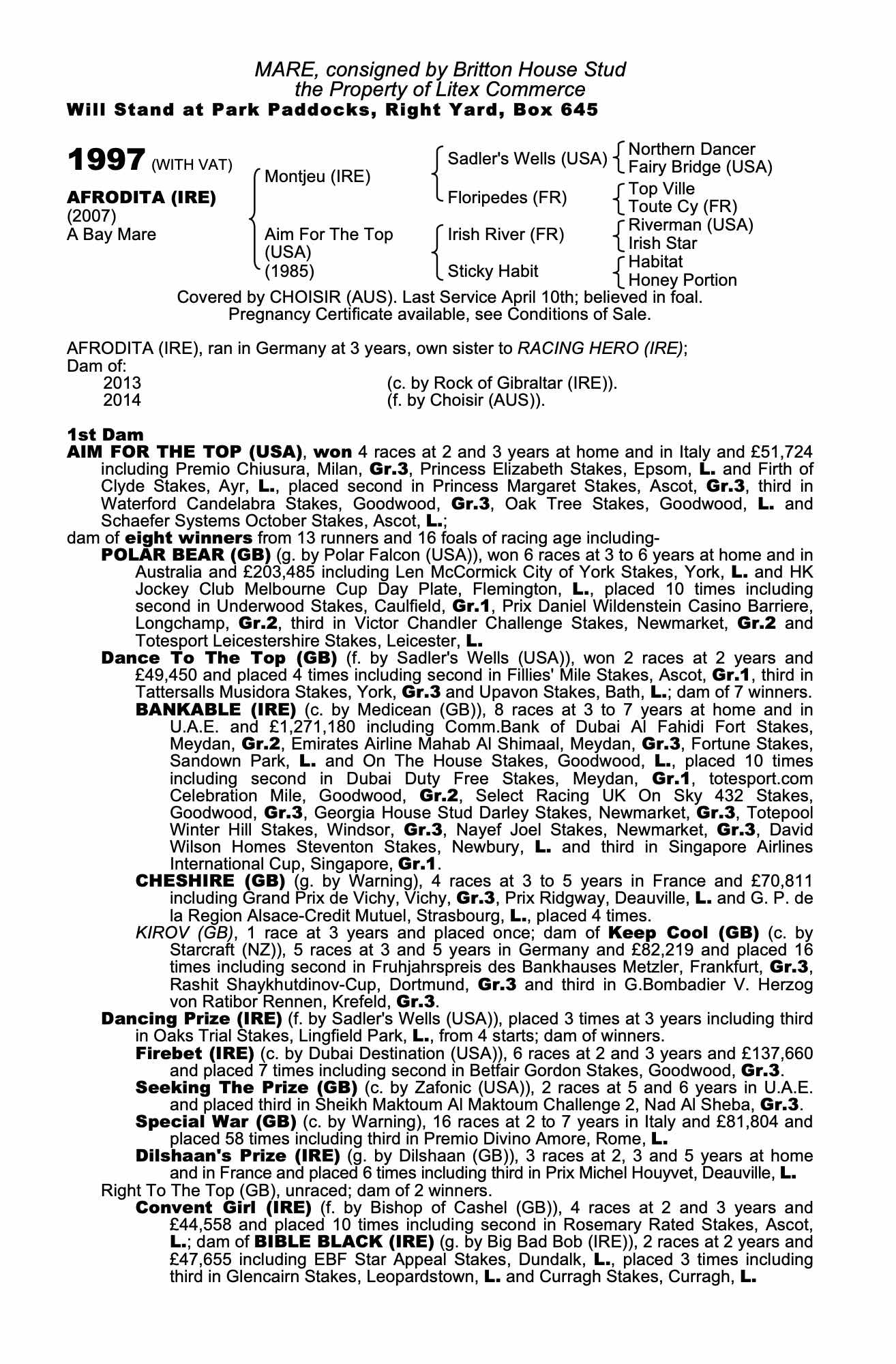 December Mare Sale 2013 lot 1949 Ascendancy (GB) (M. by Sadler's Wells (USA)), Platinum Bloodstock=>Canice Farrell, Jnr 15,000 gns