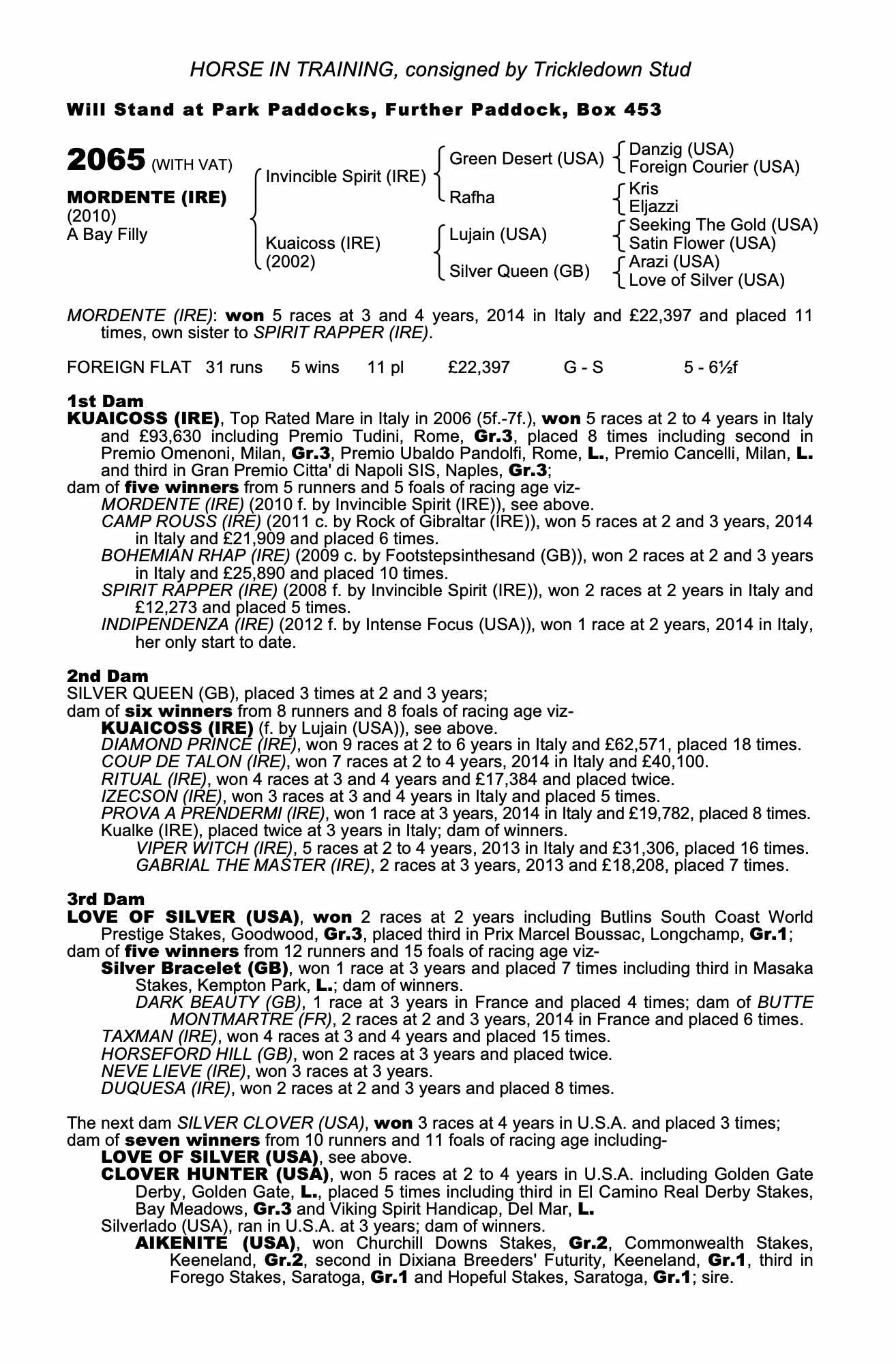 Consignor: Trickledown Stud