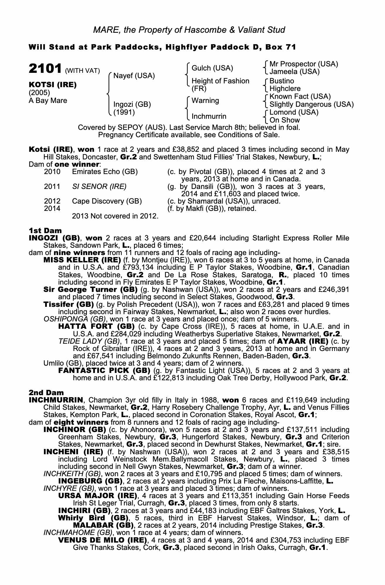 December Mare Sale 2013 lot 2065 Abunai (GB) (M. by Pivotal (GB)), Hascombe & Valiant Stud=>Black Type 15,500 gns