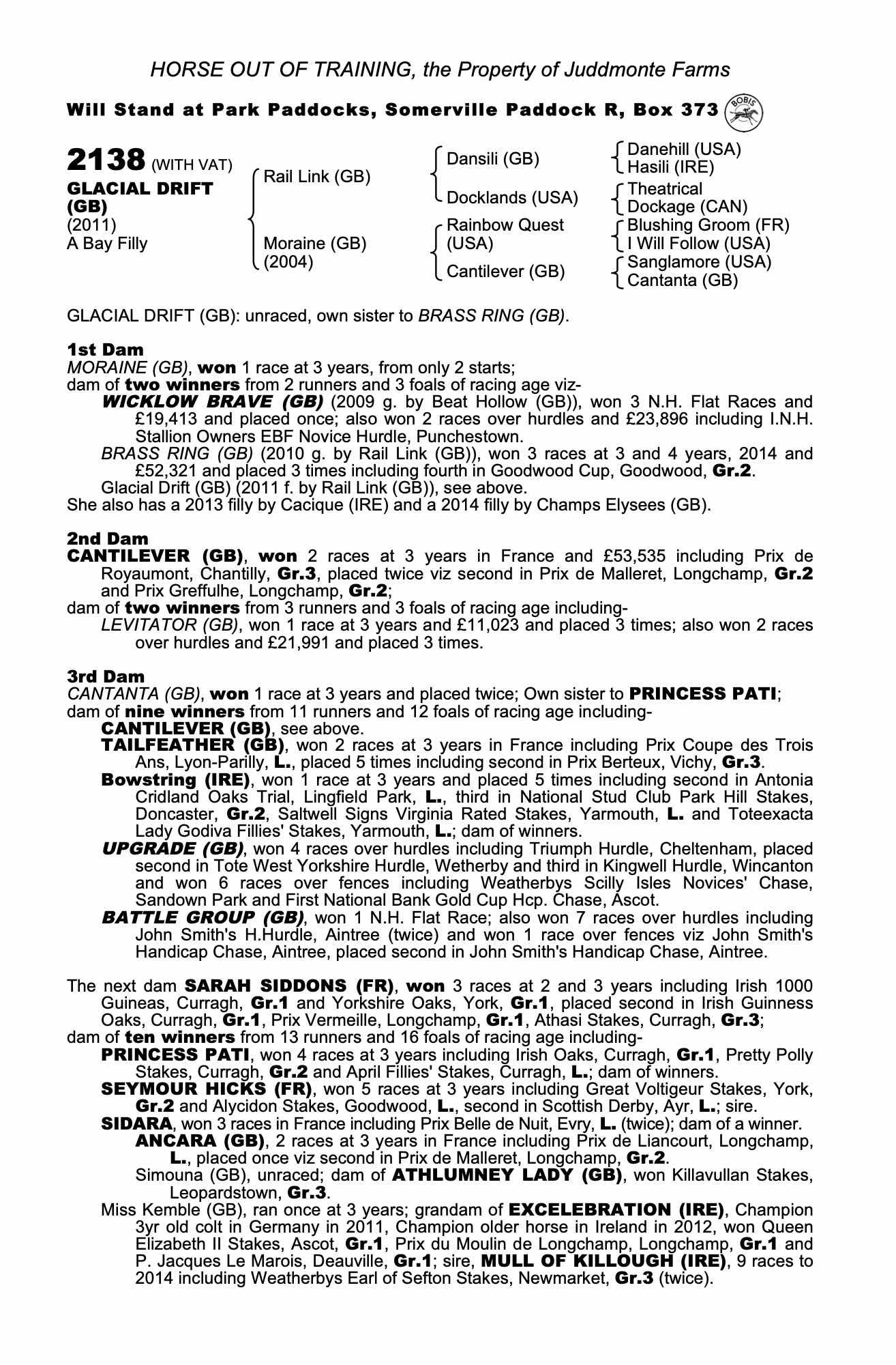 July Sale 2017 lot 703 Dreamtide (GB) (F. by Champs Elysees (GB)), Juddmonte Farms=>Harold Kirk / WP Mullins 37,000 gns