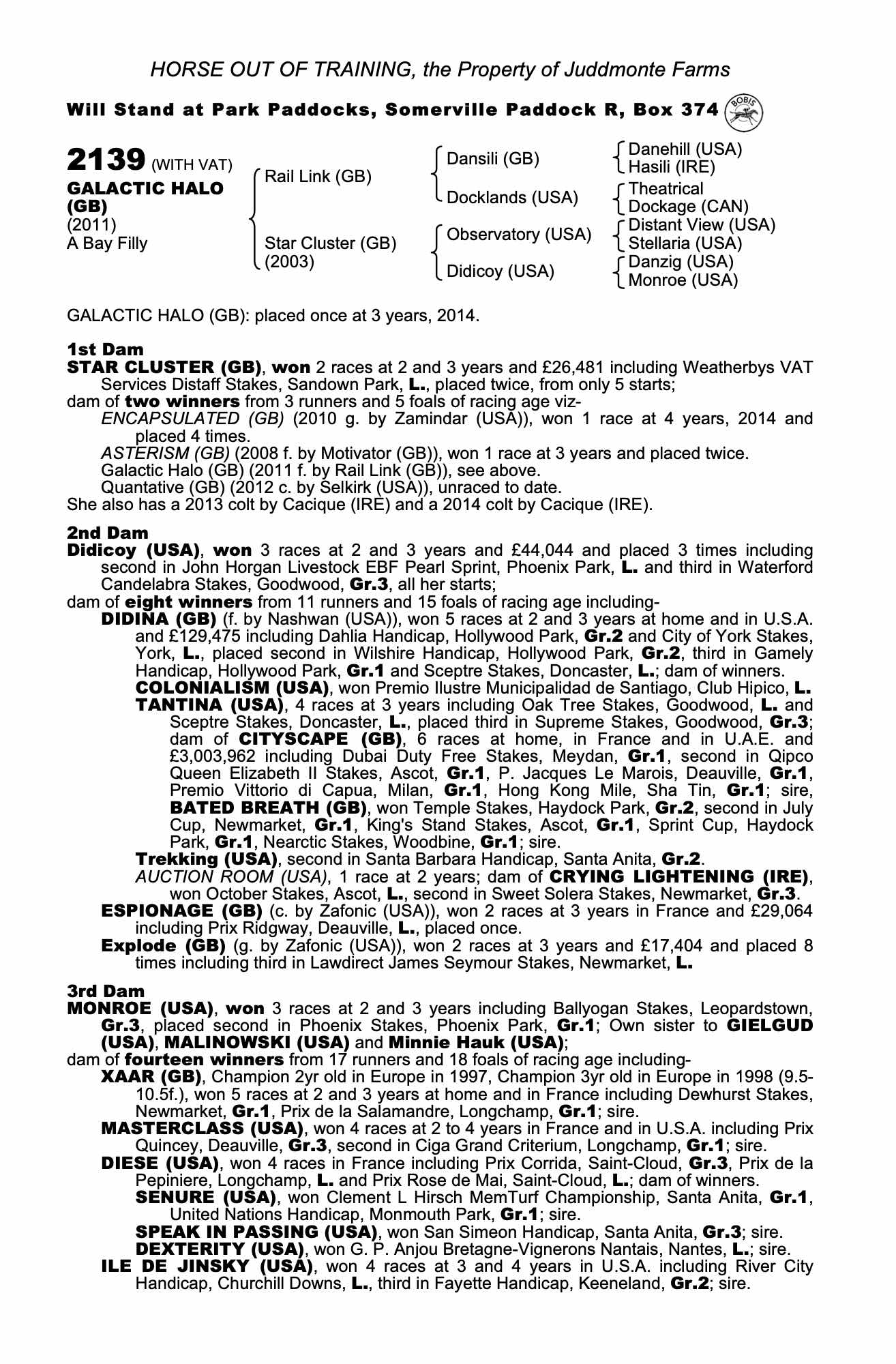 Autumn Horses in Training Sale lot 1077 Executor (GB) (C. by Cacique (IRE)), Juddmonte Farms=>C Gordon-Watson Bloodstock 9,000 gns