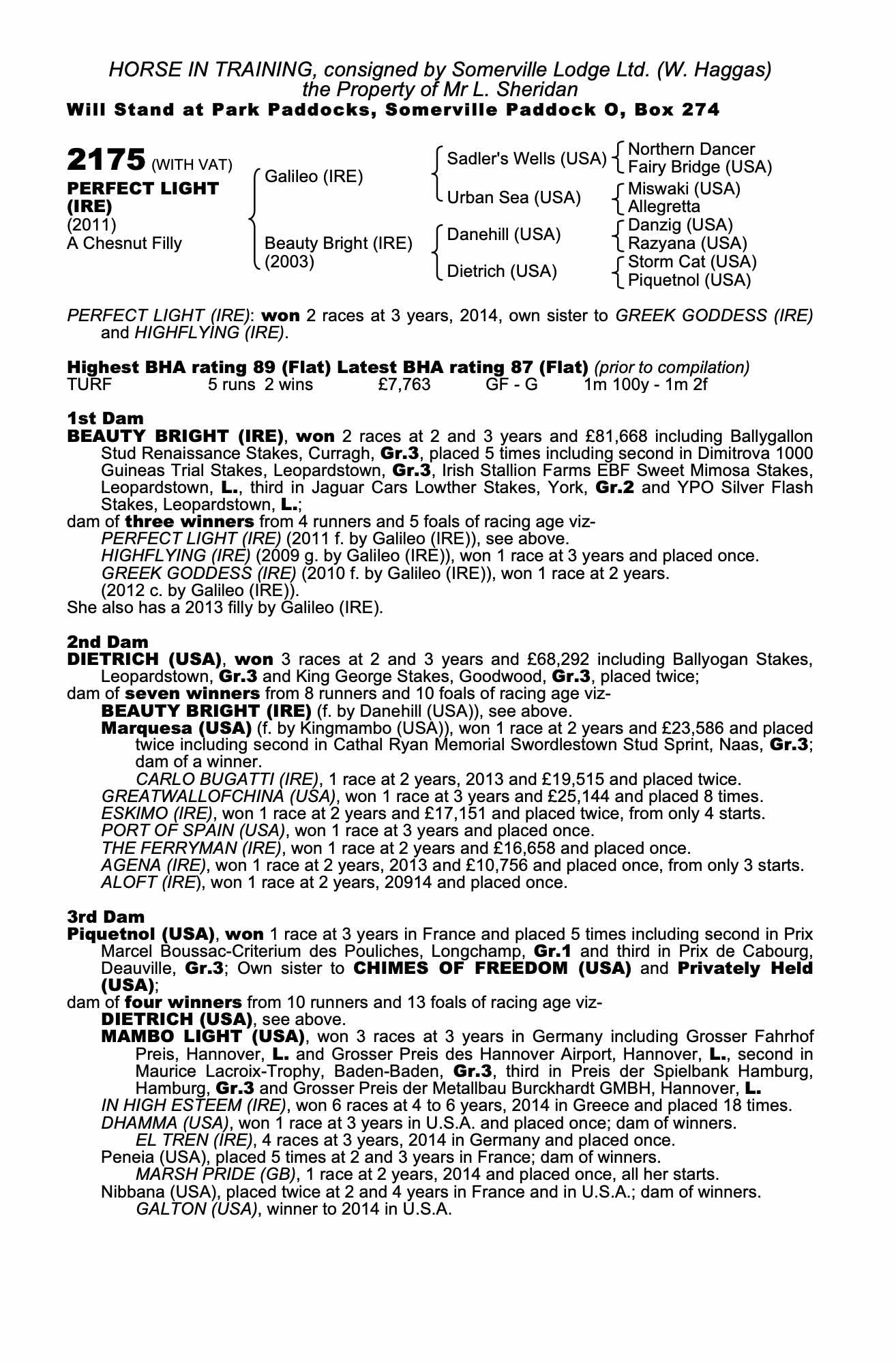 Consignor: Somerville Lodge Ltd. (W. Haggas)