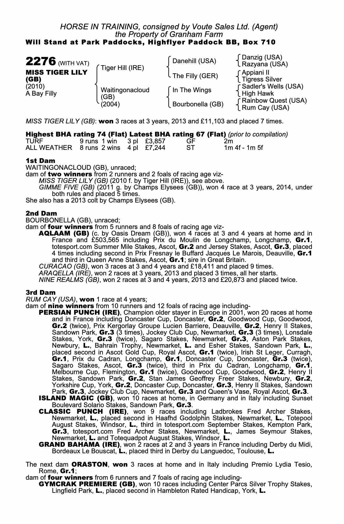 Consignor: Voute Sales Ltd. (Agent)