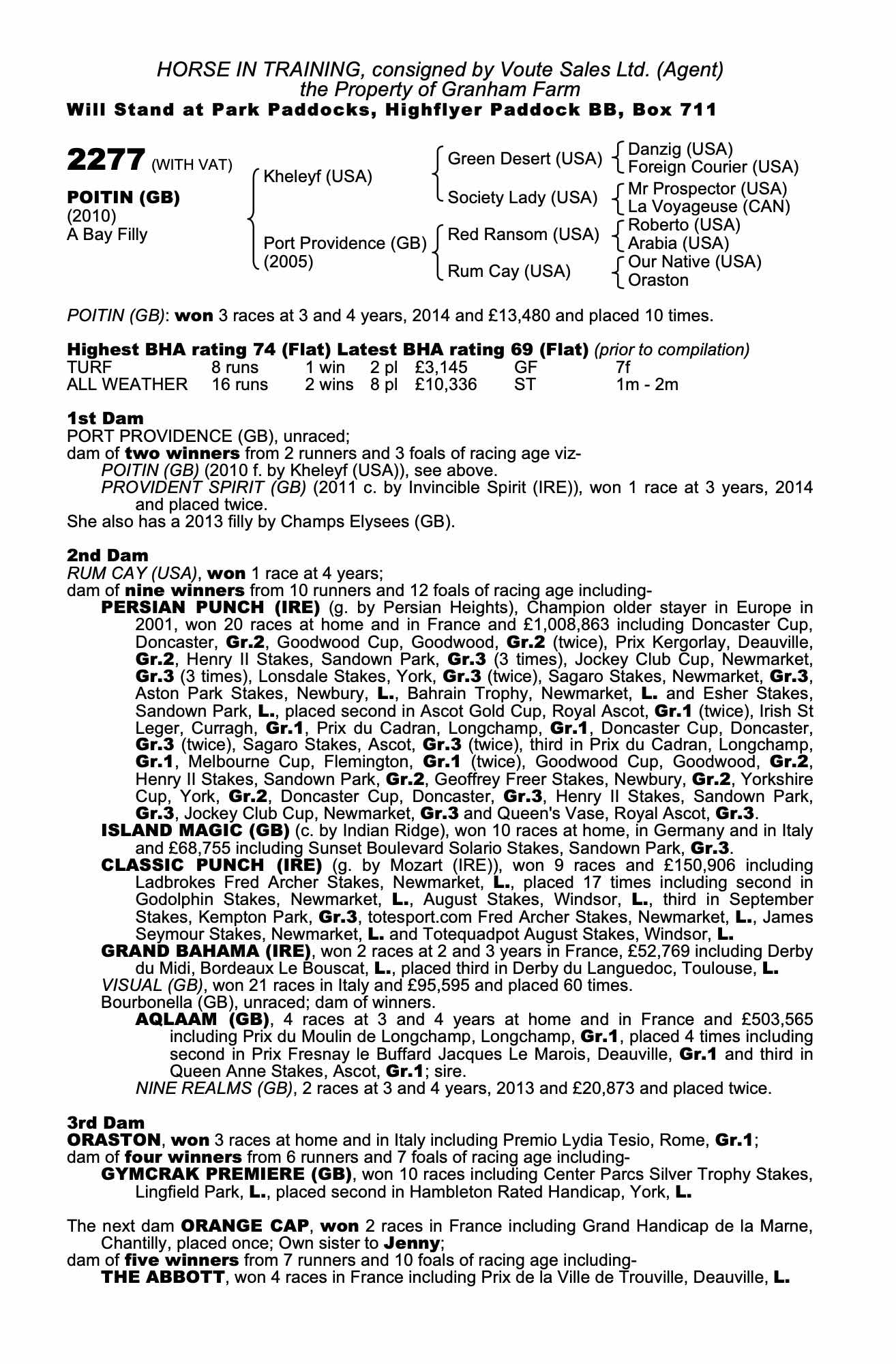 Consignor: Voute Sales Ltd. (Agent)