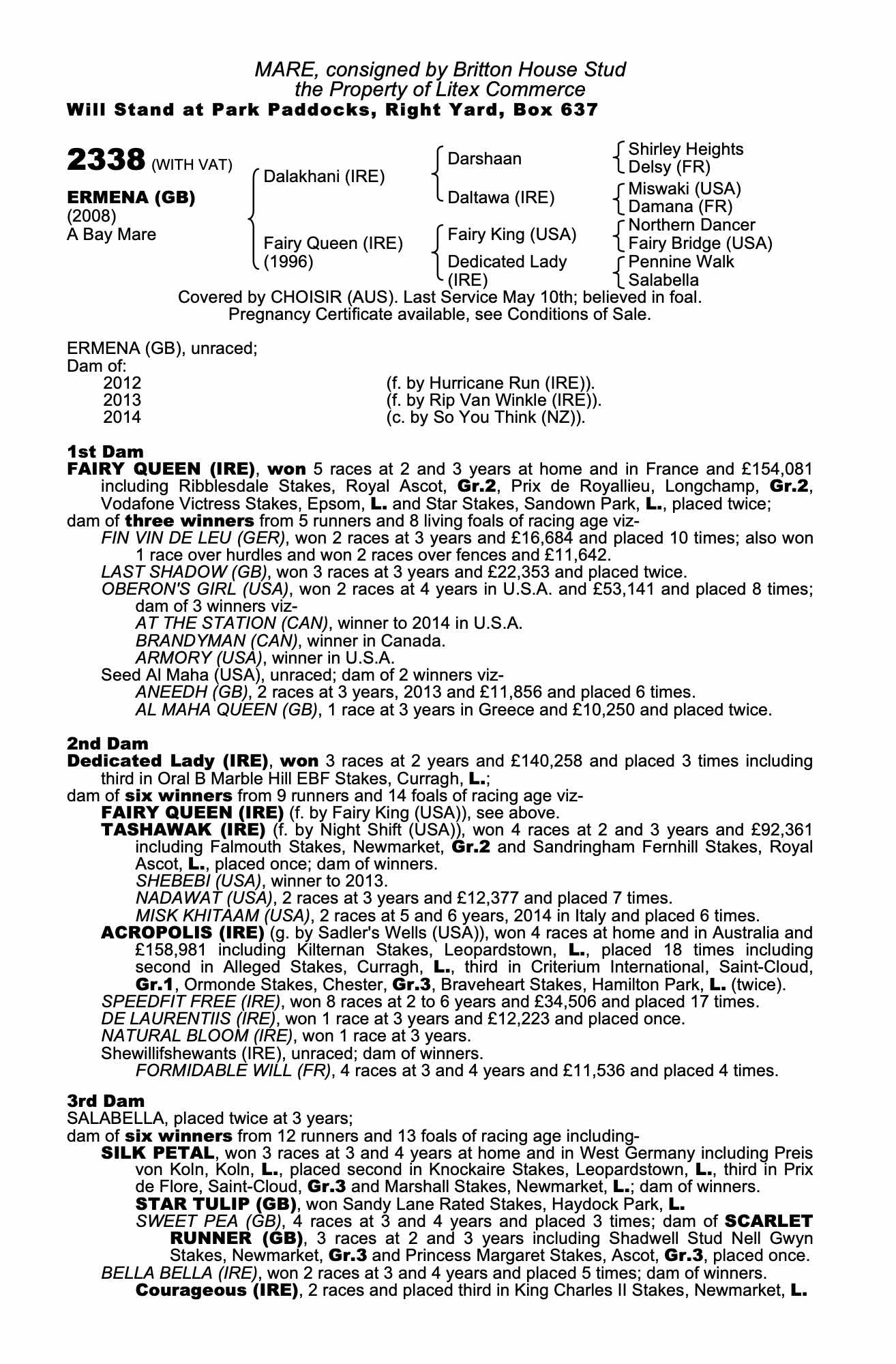 Ascot November Sale 2017 lot 39 Elusive Bird (GB) (F. by Choisir (AUS)), Seven Springs Stables (G. Bravery)=>SS Dhillon £600