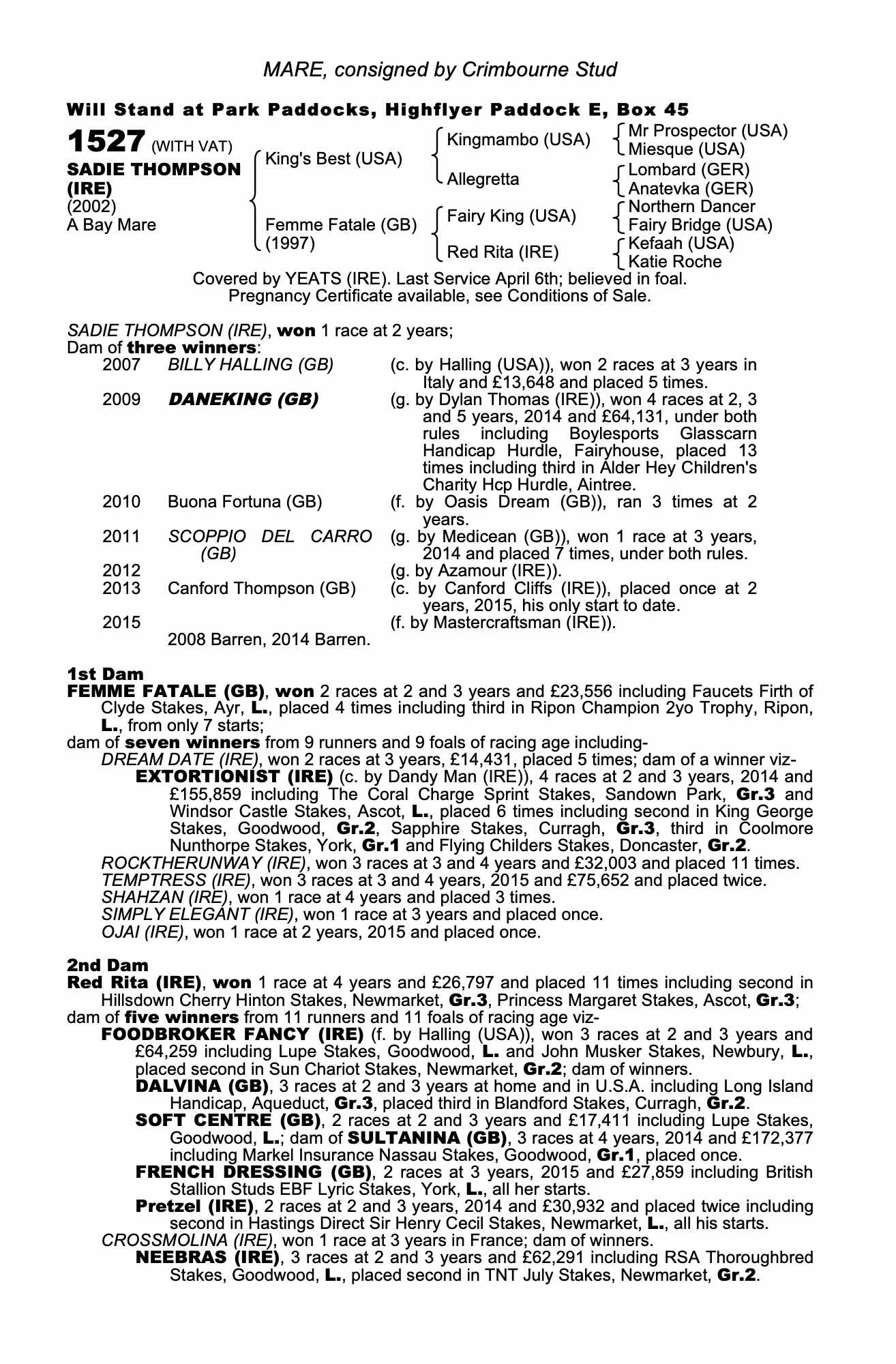 Cheltenham December Sale 2021 lot 45 Sadie Hill (IRE) (F. by Kingston Hill (GB)), Blackhall Stud, Ireland (P. M. Pierce)=>Katy Price Racing £55,000
