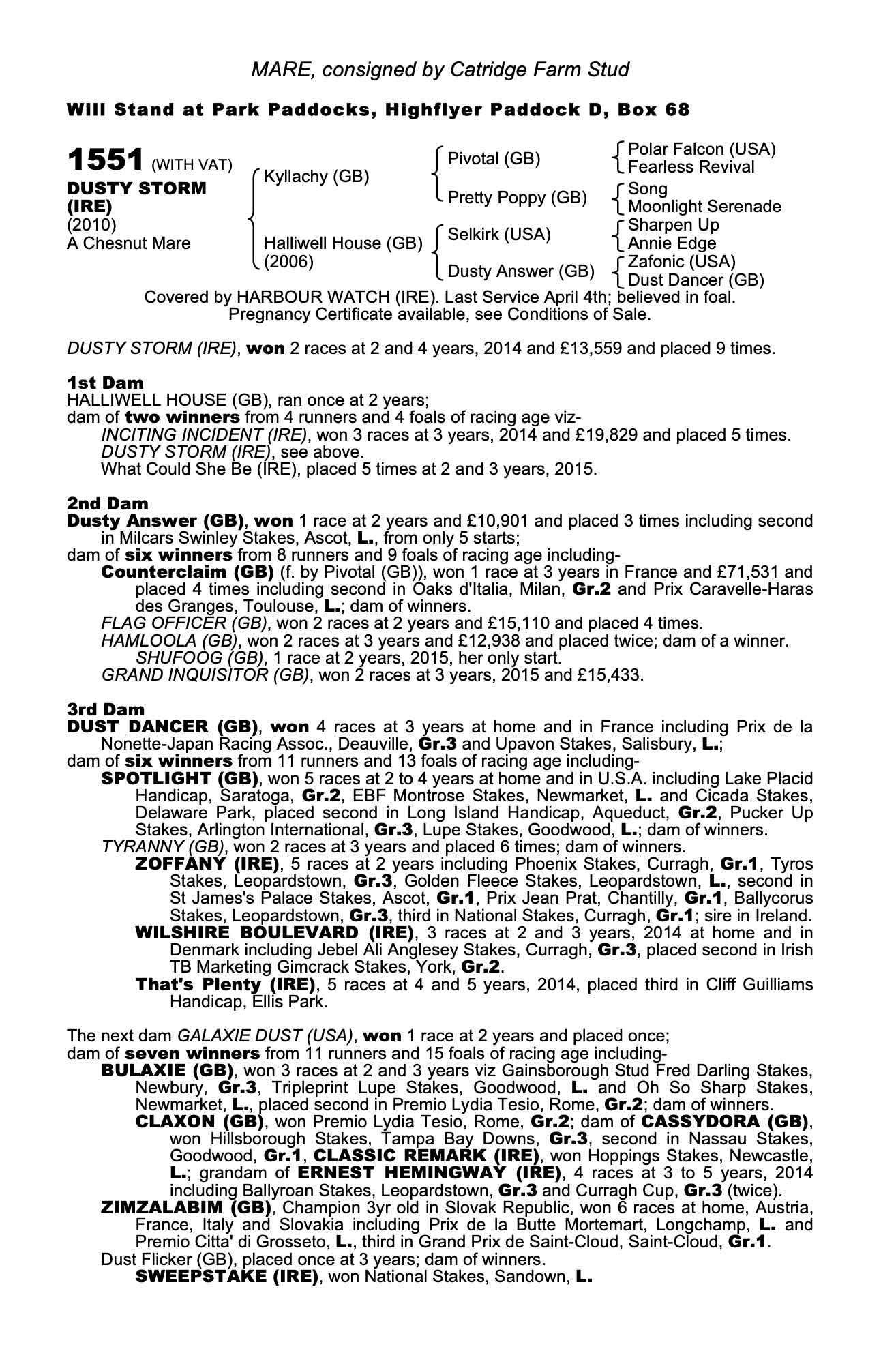Consignor: Catridge Farm Stud