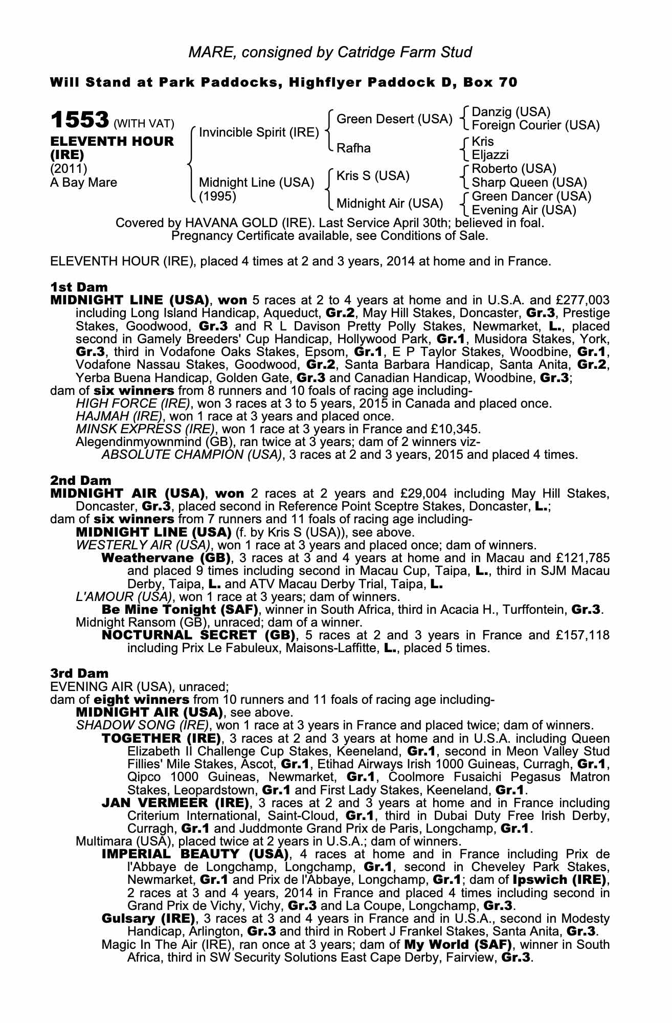 Consignor: Catridge Farm Stud