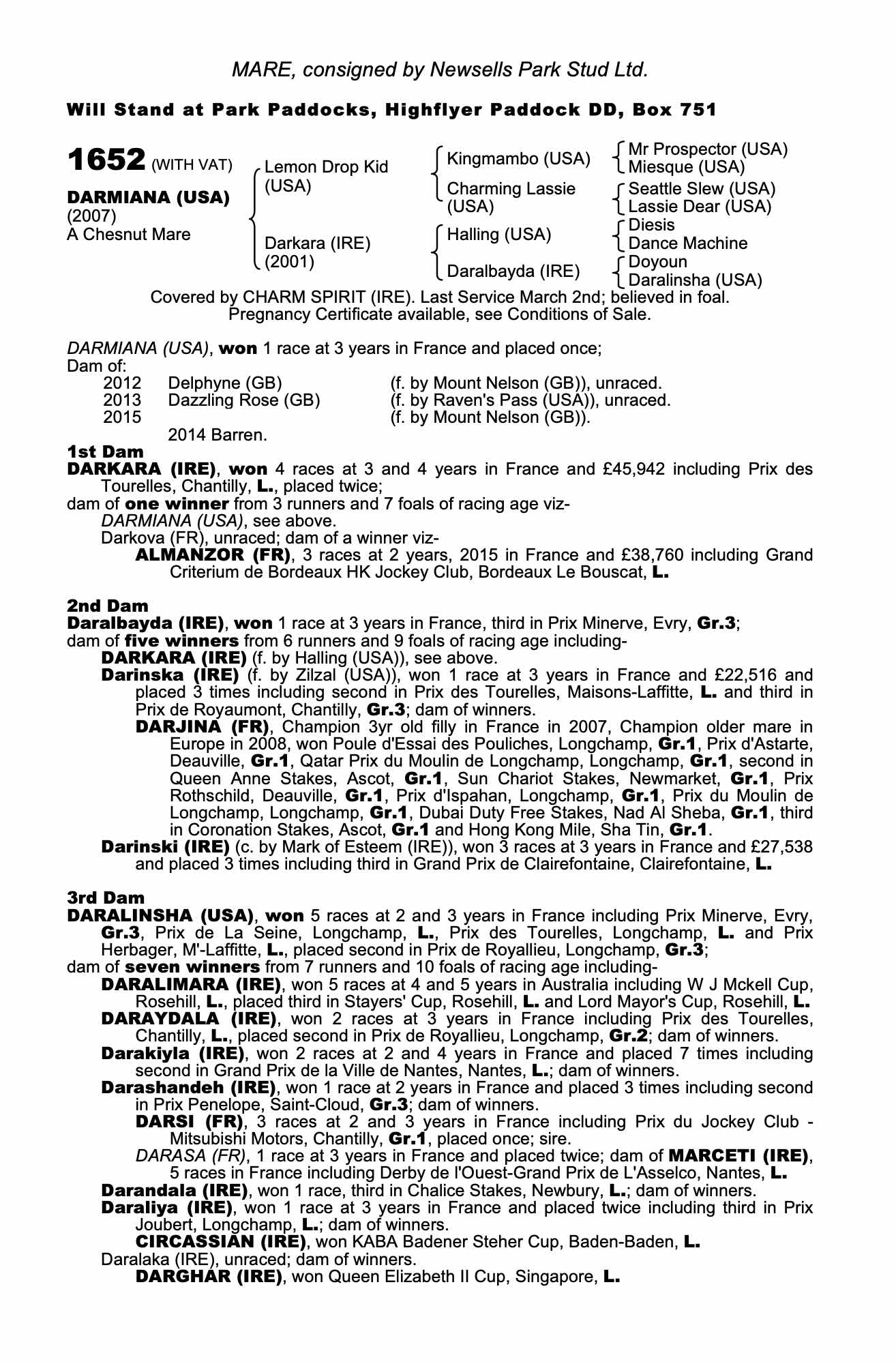December Mare Sale 2024 lot 1599 Darkova (USA) (M. by Maria's Mon (USA)), The National Stud Ltd.=>Avenue Bloodstock 90,000 gns