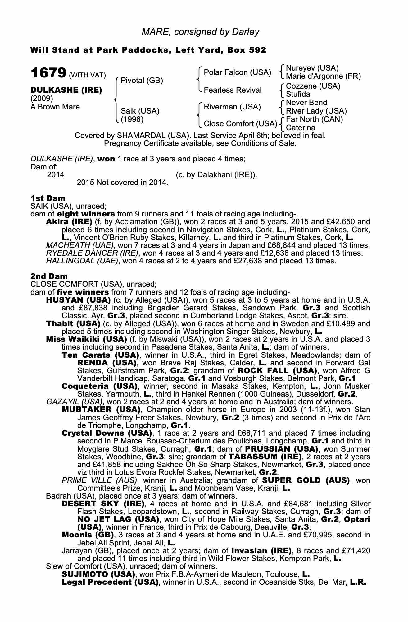 Online Sale - 23rd October 2025 lot 155 Samaher (IRE) (M. by Toronado (IRE)), AZ Business, France=>Lot Not Sold 1,000 gns